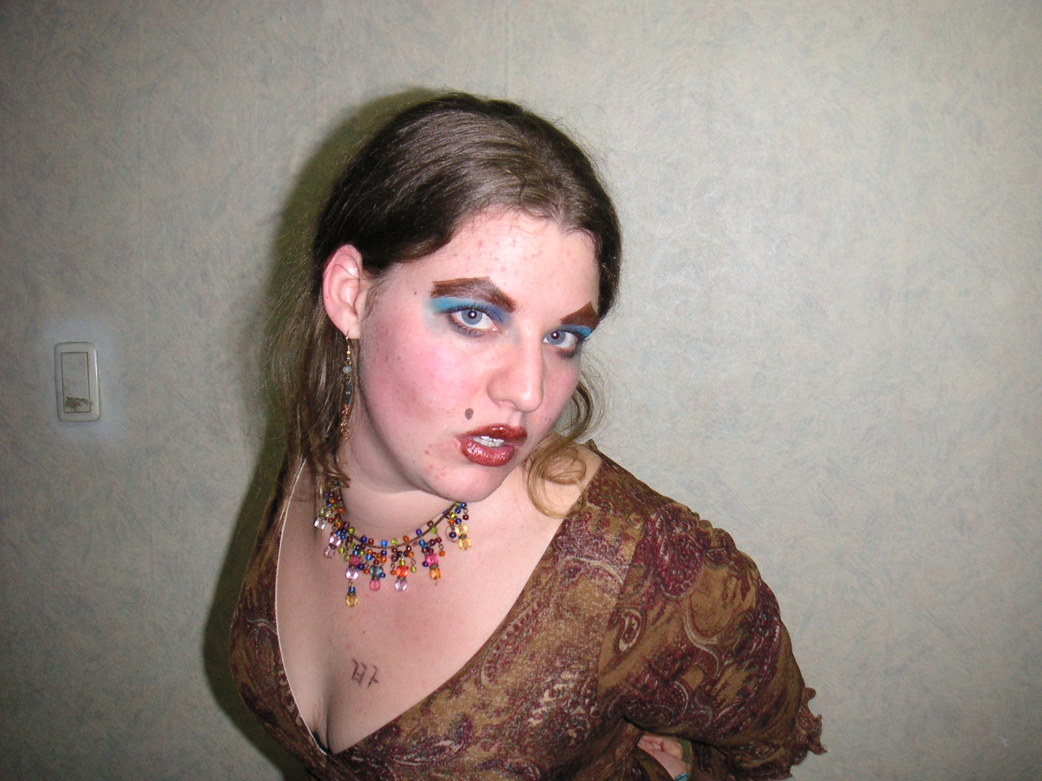 Well, last weekend I went over to Suzie’s house for drunken makeovers! She decided we should make each other look as bad as possible, and well, I ended up looking like a man in drag!!