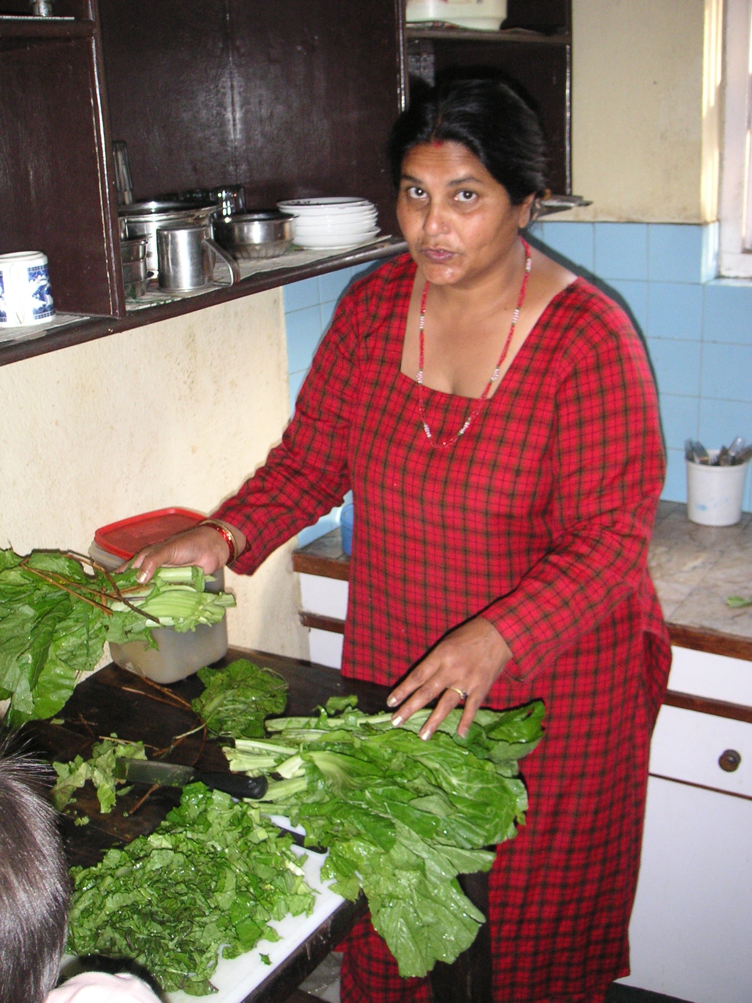 The vegeteble was saag (spinach), and we both hunted all over the kitchen for some leftover potatoes or tomatoes or pickle – anything we could have with our rice apart from spinach!