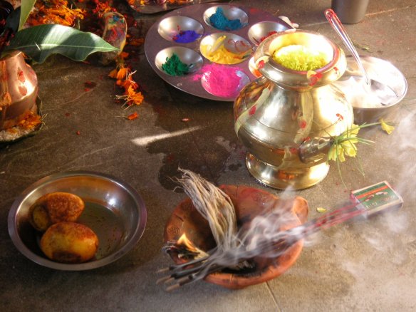 Later on, we took the kids out round the neighbourhood singing and dancing to collect some money (we didn’t do too badly either – most people only give 5 rupees or so, but we came home with about 900 rupees altogether, so Aamaa was very pleased!)