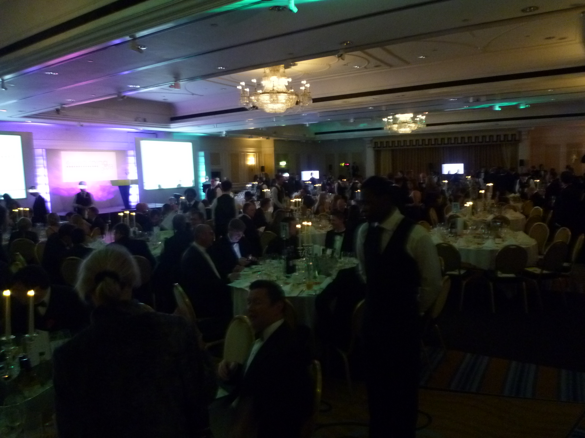 However, we’re dead chuffed with the final products, which are available online here if you fancy taking a look (the courses are called Technical Project Management for WASH emergencies, and Information, Education, and Communication for WASH emergencies). We also managed to produce them onto CDs, and in French, and the feedback from staff out in the field has been fantastic. However, even better was the fact that we got shortlisted for an e-learning award! We presented our courses to the judges back in September, and were invited to the very swanky e-learning awards dinner to find out if we won. Our category was for ‘Excellence in content production – not for profit sector’, and there were 5 other organisations/companies who were shortlisted in our category. The ceremony itself is all very elegant and formal – black tie, including a champagne reception and a 4-course dinner at the Mariott hotel in London (Ooh-er Mrs!). The e-learning company who developed the courses with us very kindly paid for our tickets to this shin-dig, as well as putting C and I up in a hotel in London for the night.