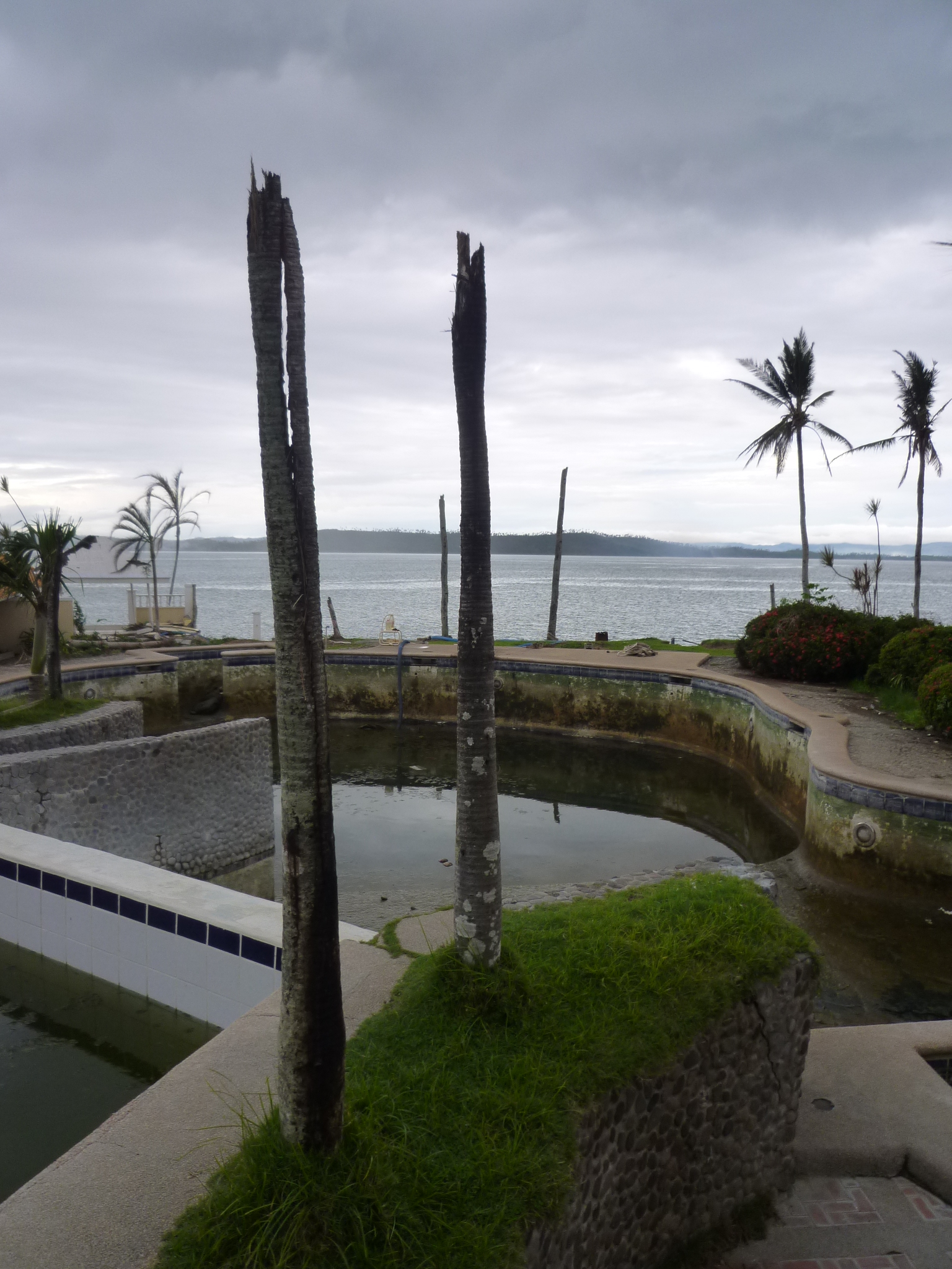 It’s also incredibly damp here – very humid and sticky, still raining a lot, so lots of mosquitos and pretty bad smells. The hotel we’re staying in, which also houses our office, was not too badly damaged by the typhoon, although the swimming pool was filled with manky green sludgy floodwater that appears to be breeding mosquitos and frogs at a frightening pace. It’s been mostly drained and cleaned out, but still has a sludgy greenish puddle at the bottom.