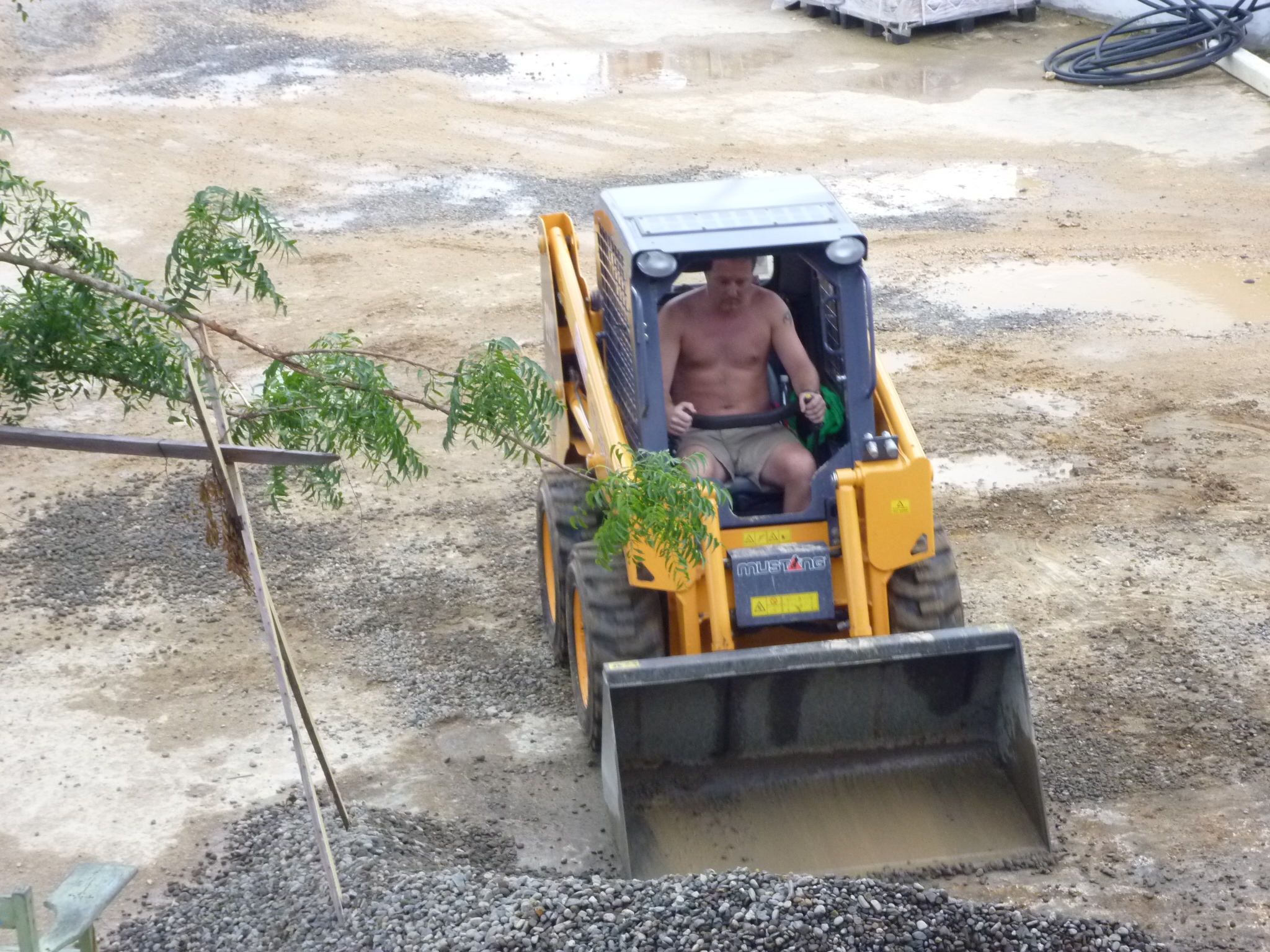 The Norweigians are running the UN camp here, so they mostly spend their days wandering around topless twiddling with the giant industrial generators and batteries, managing the water system that feeds the camp, and whizzing about on mini-diggers and JCB-type things moving gravel around.