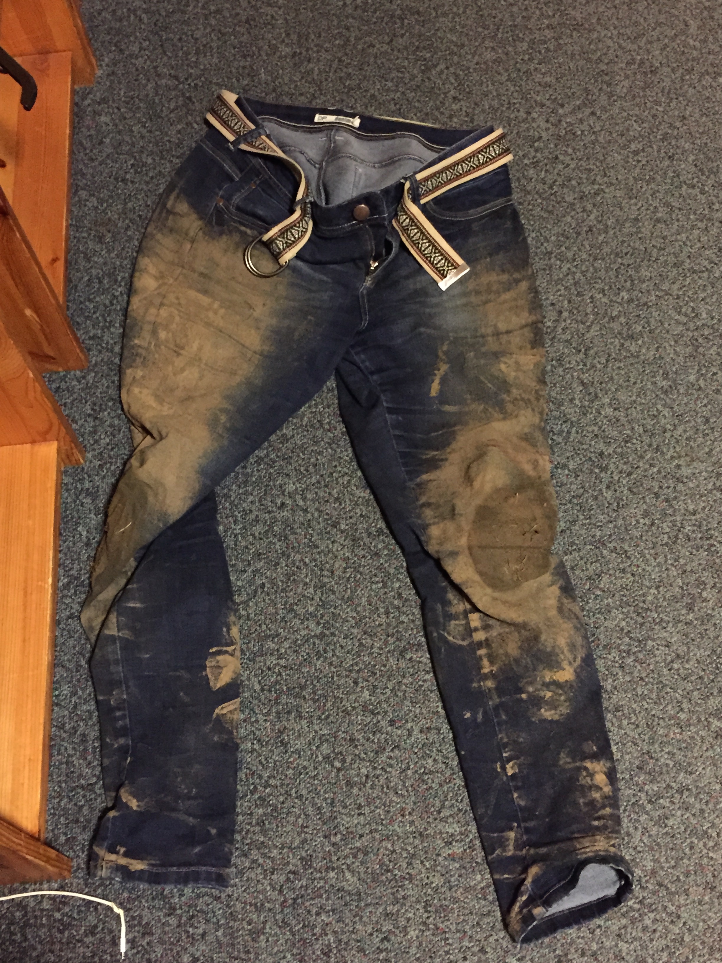 I got covered in mud from head to toe. Here’s a picture of me by lunchtime after a bit of hurling myself to the ground and crawling through the mud…