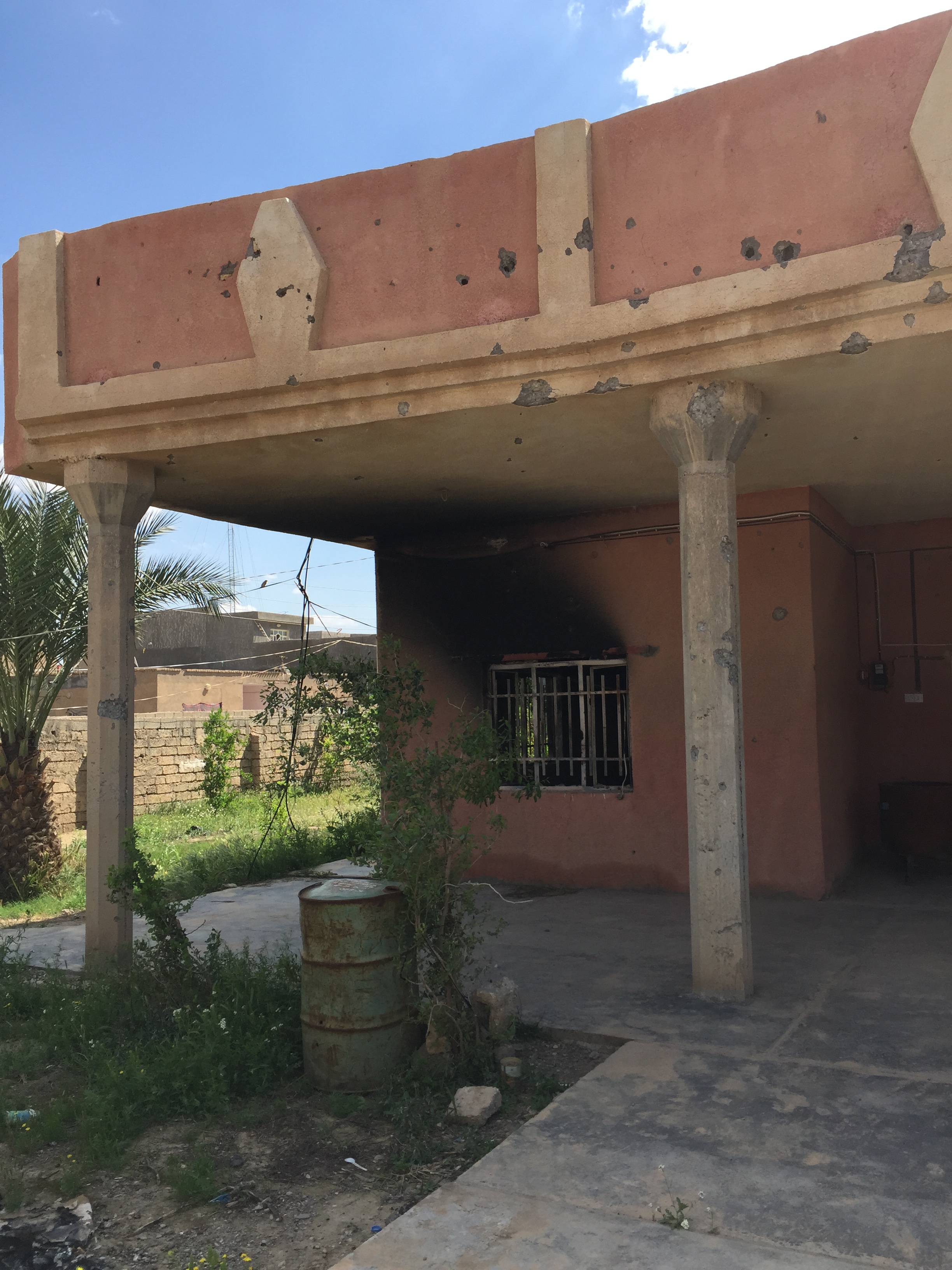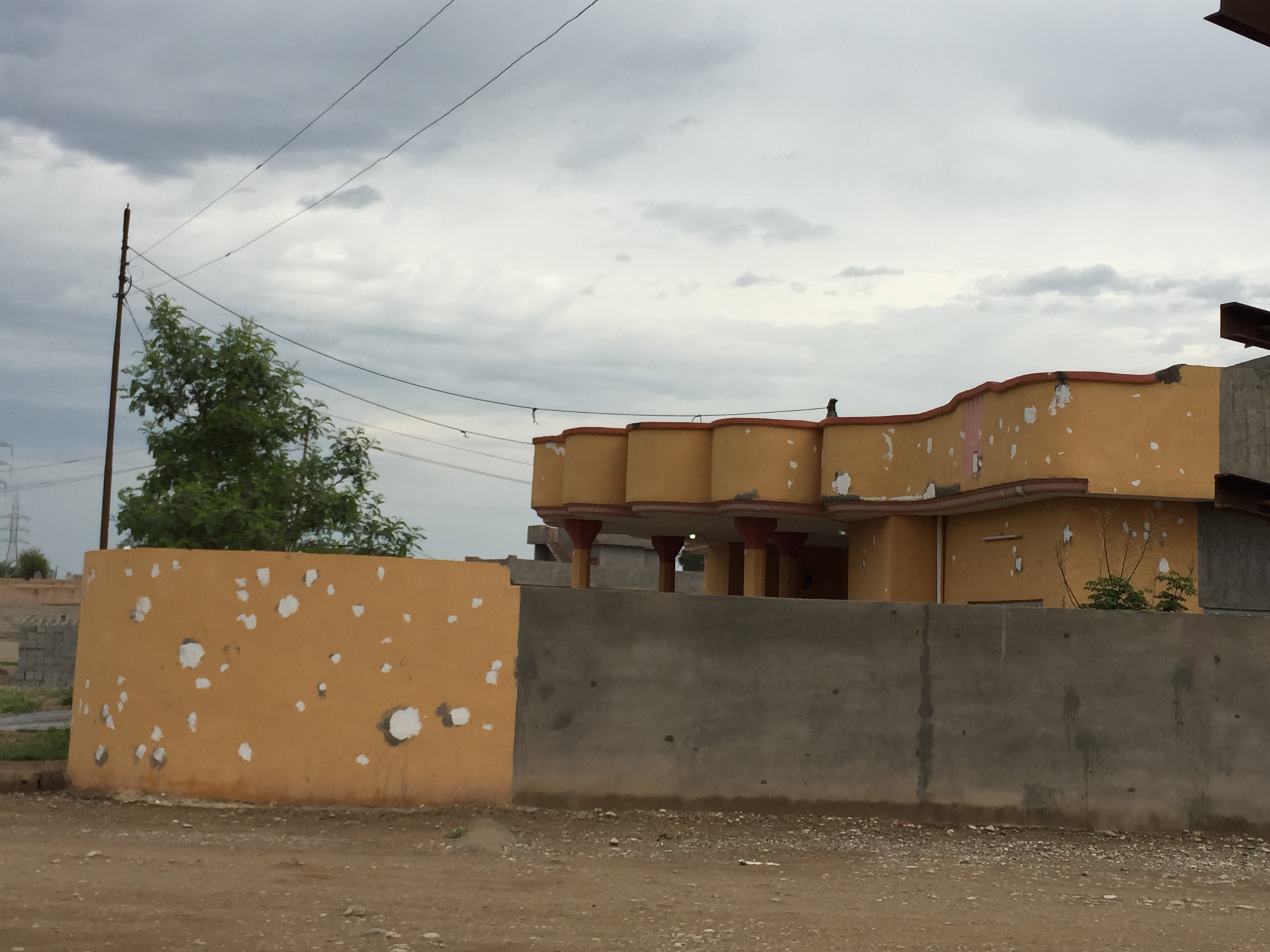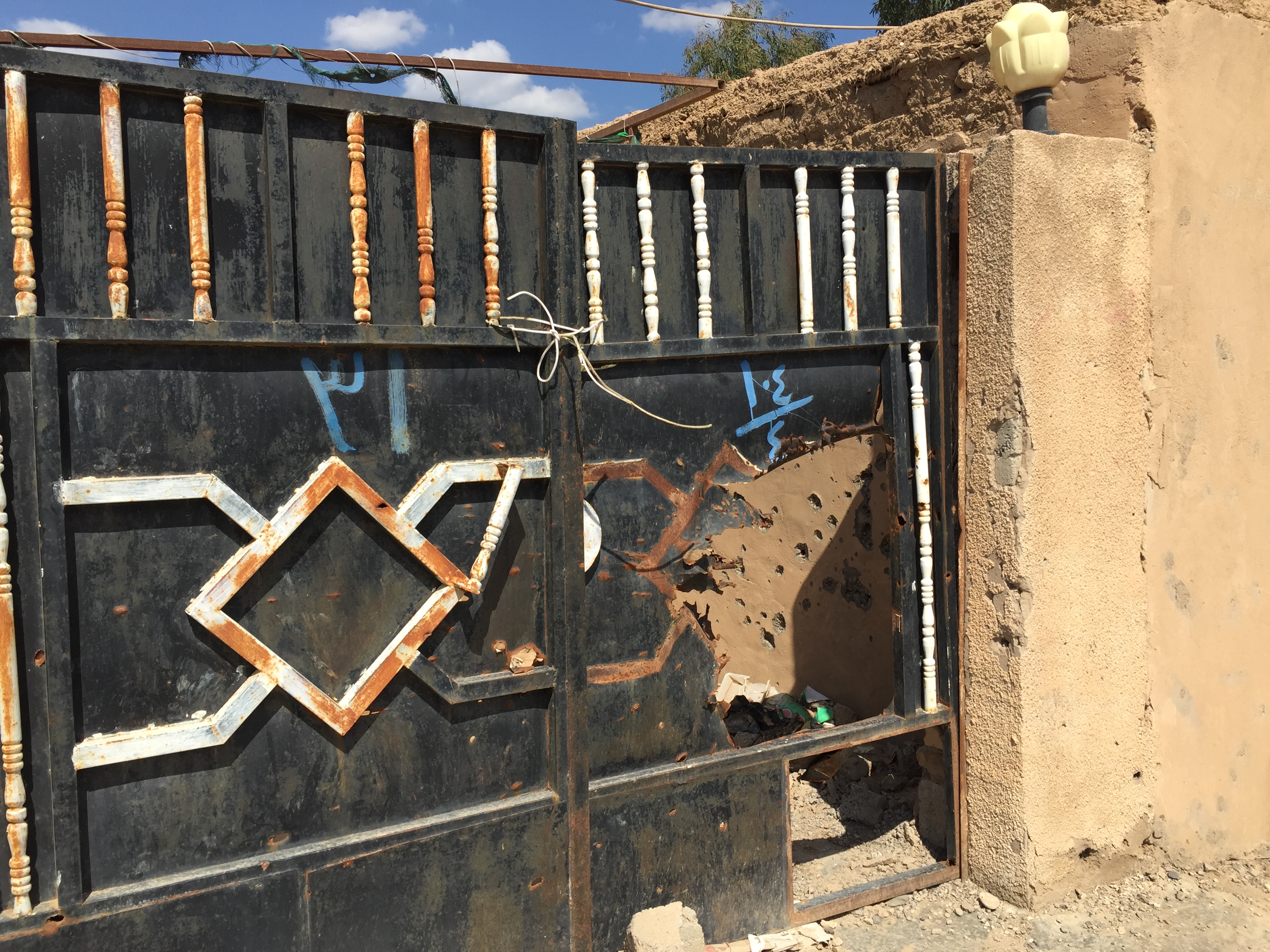 This house had a hole blown into their front gate, and a lot of bullet holes inside