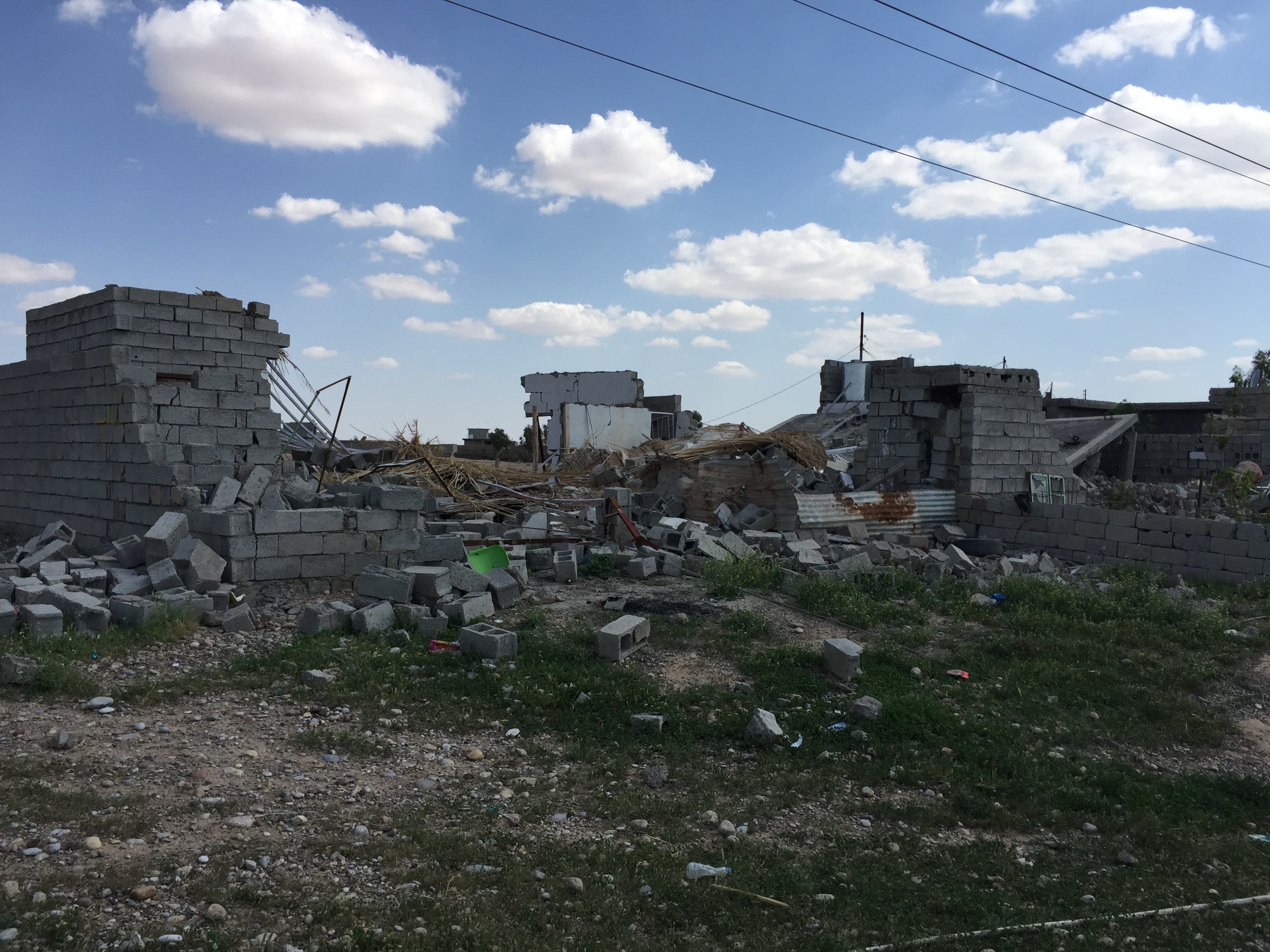 A shop front in a village that took some heavy fire during the fight with ISIS