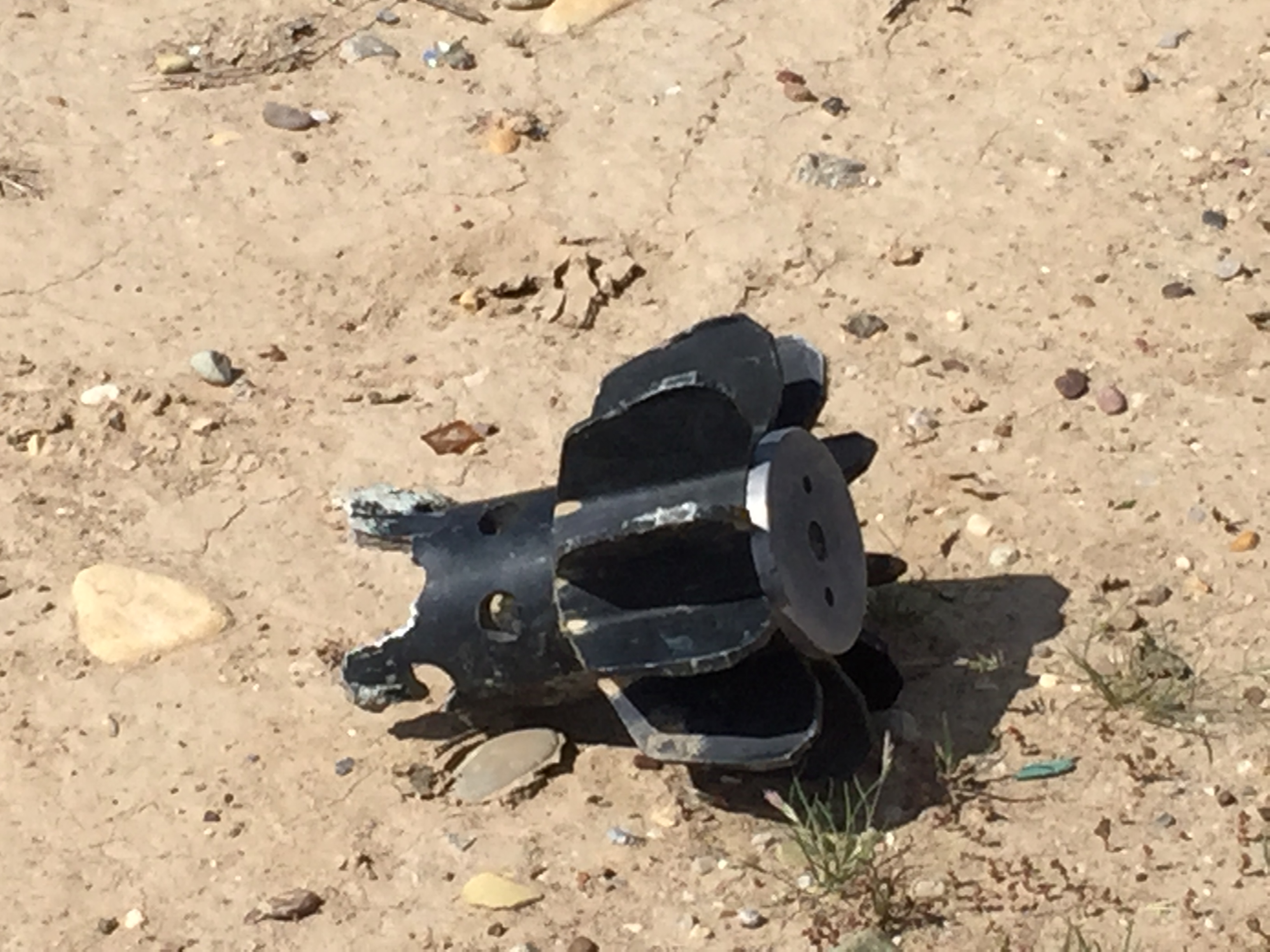 Remains of a mortar round left on the ground