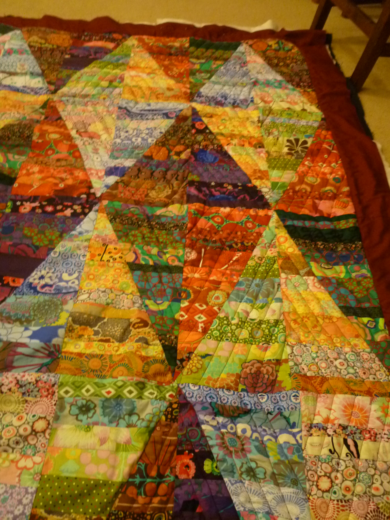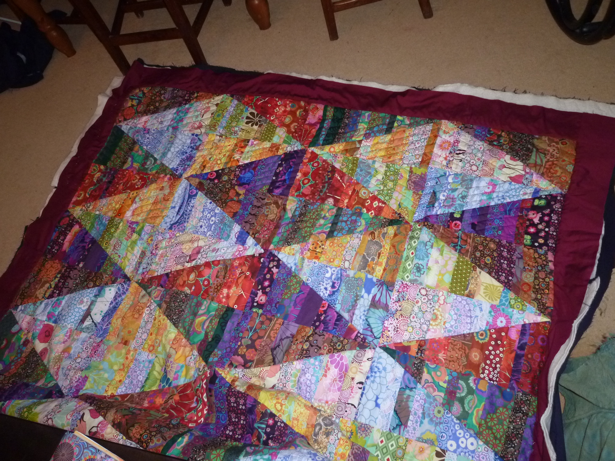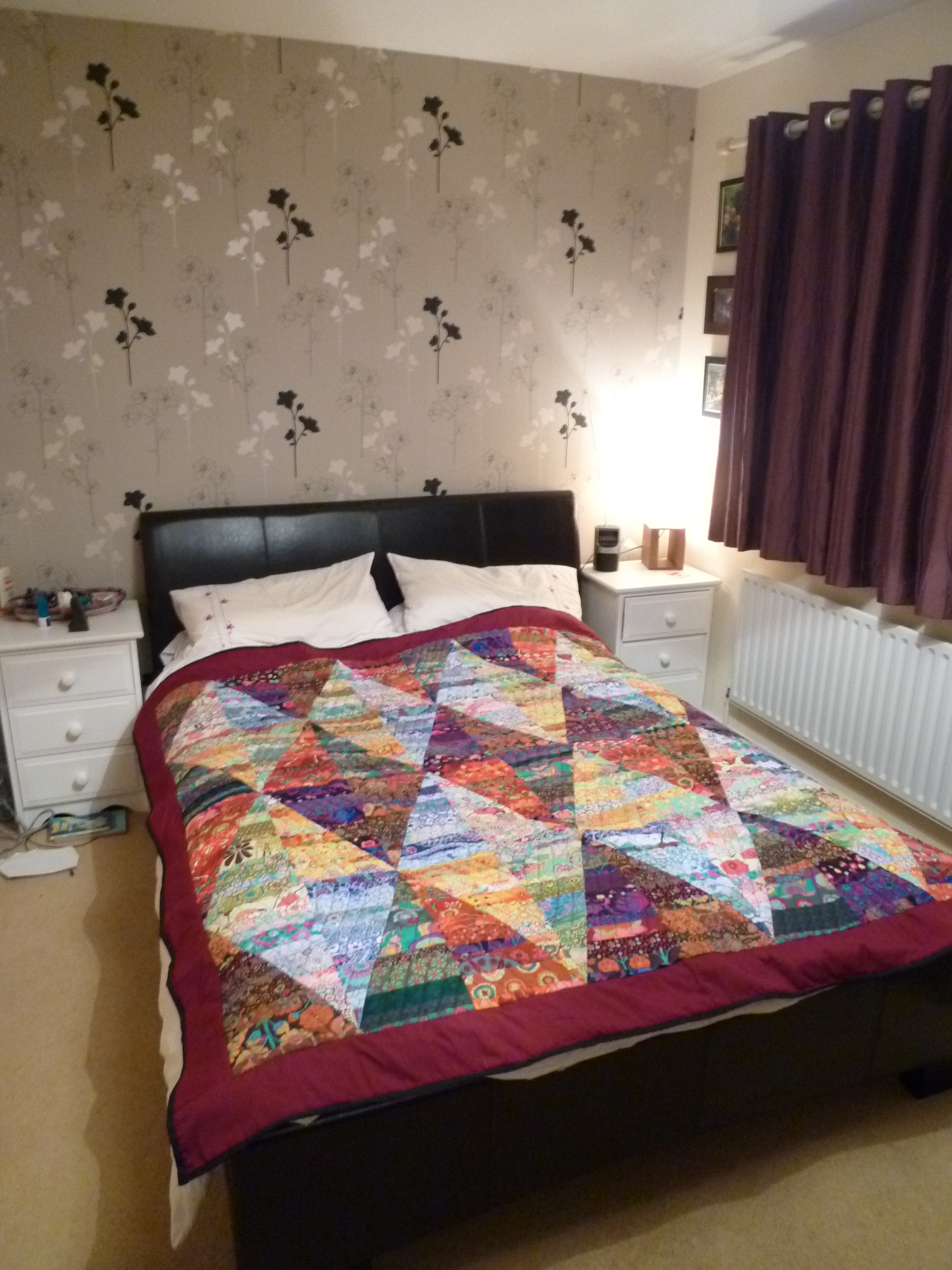 This one was a labour of love – possibly my favourite quilt of all time, it took a fairly long time to make, but it’s utterly gorgeous, and I almost didn’t manage to give it away. But then two of my best friends went and got married, and it seemed like the perfect wedding gift (about 2 years after they actually got married – I had to make up for the fact that at the time all I bought them was a nice set of towels…)