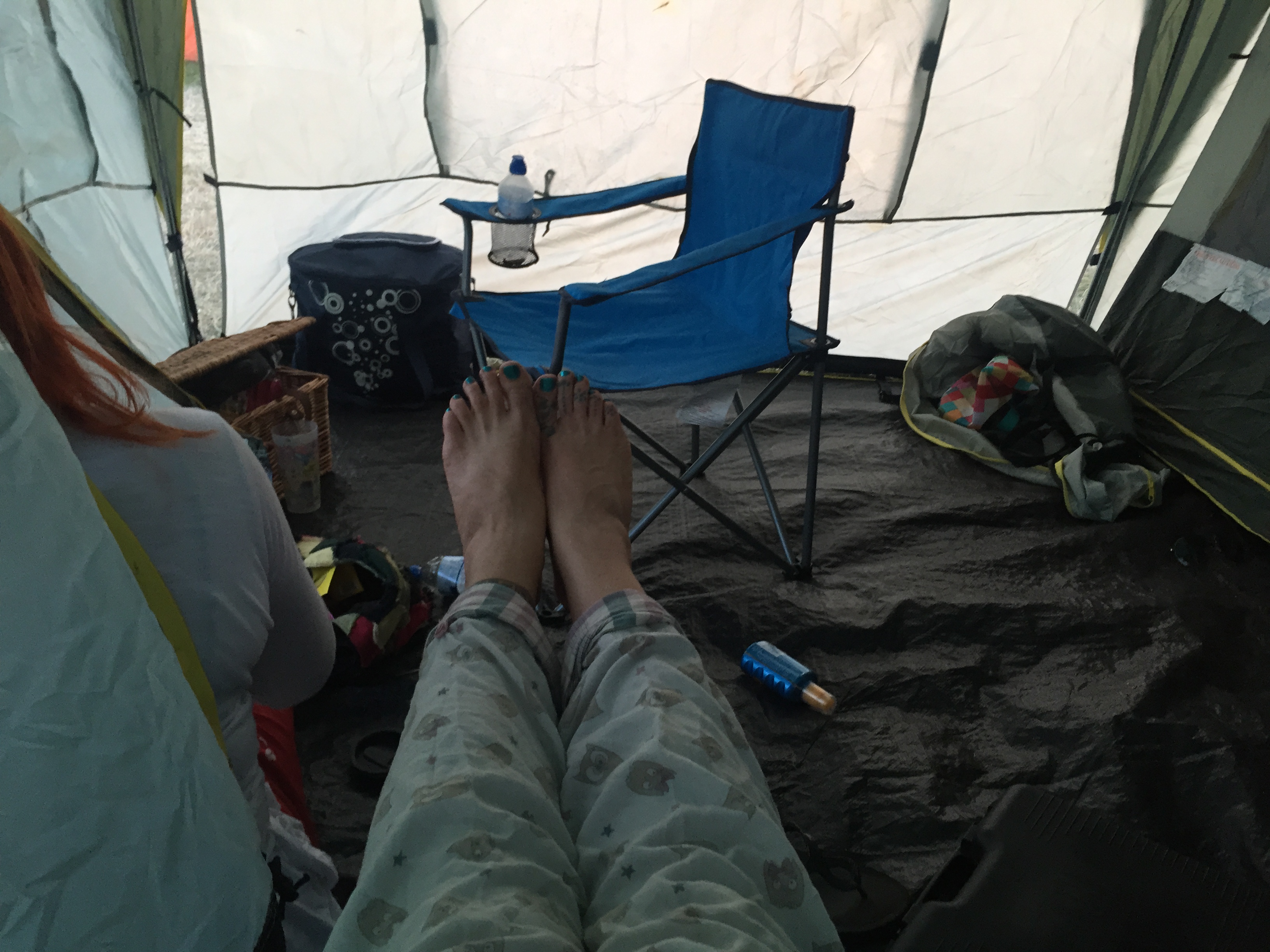 Back in the tent by 9pm, in my PJ’s with a cup of tea – cos we’re sad old gits…