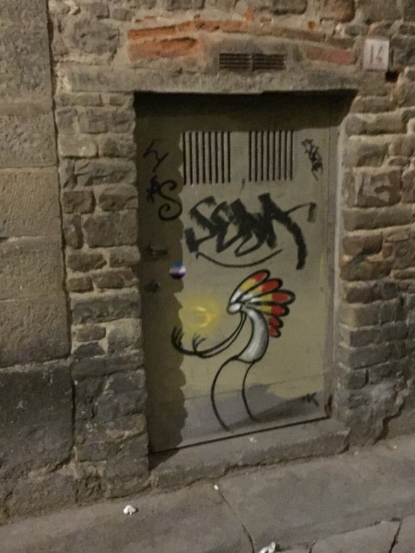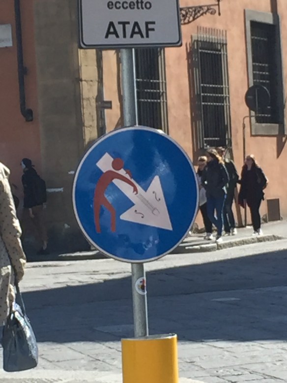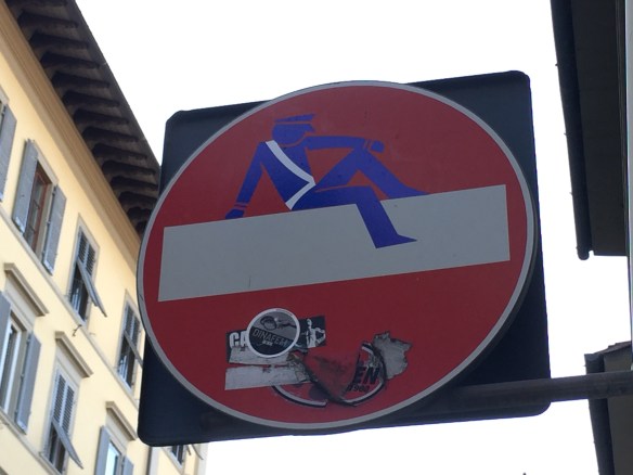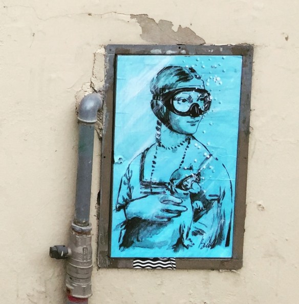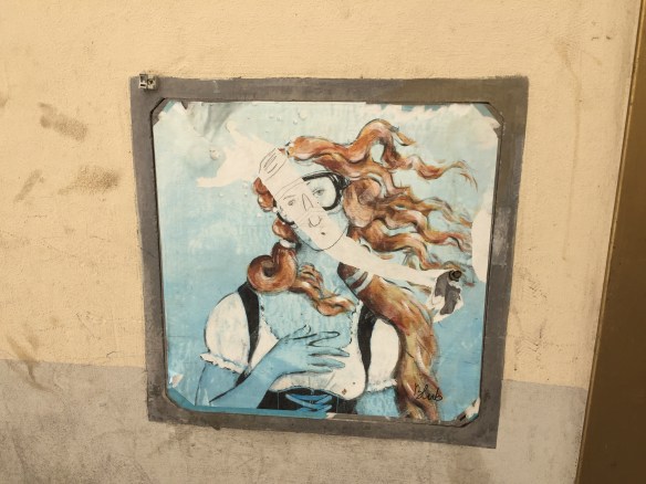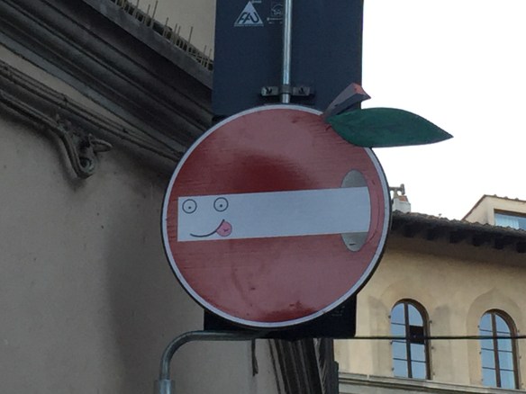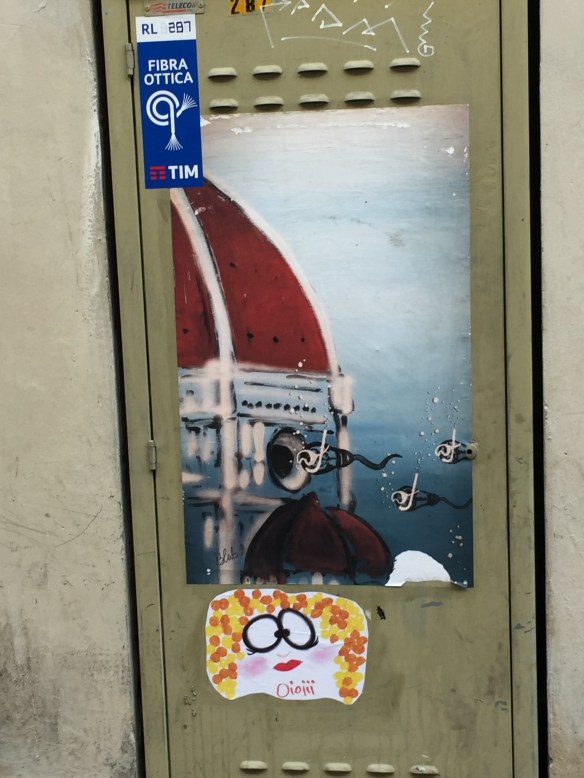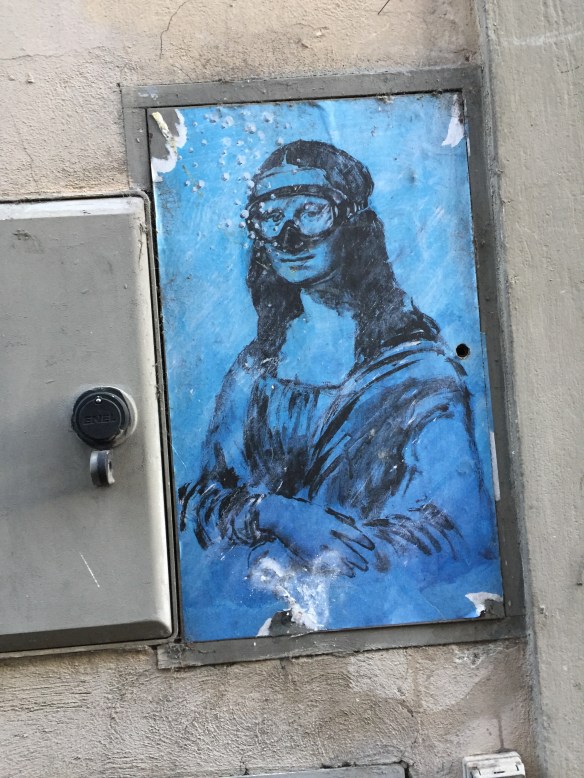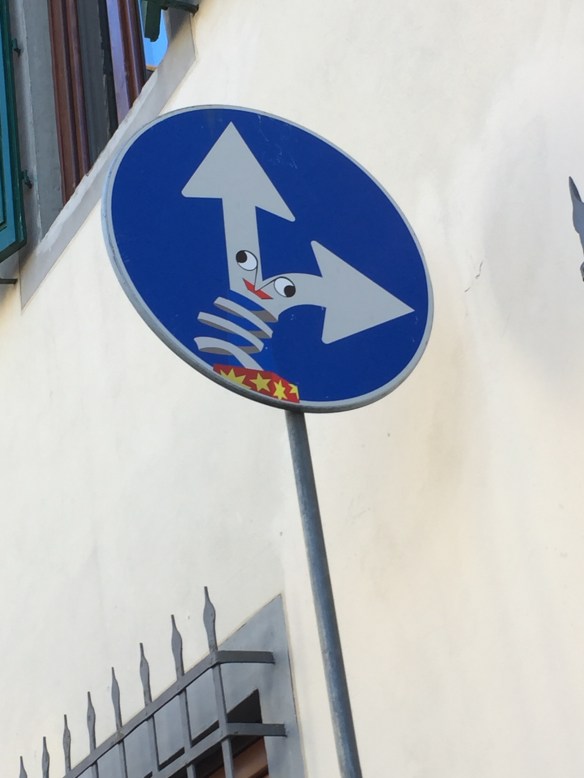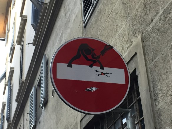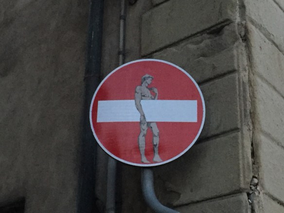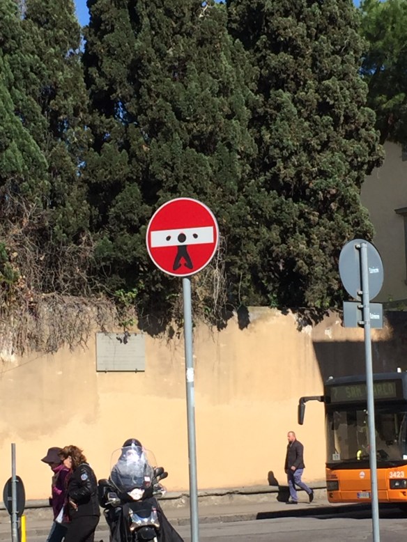 In addition to the incredible sculptures, fantastic architecture, and renaissance paintings we saw in Florence, we also spotted a lot of really fun street art while out and about, and we had a lot of fun stumbling upon it on our strolls around the city. The main artists were Clet, Blub and Marie something (i can’t remember her name, even though we actually met her!).