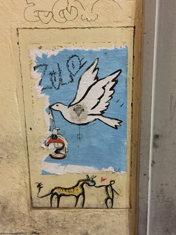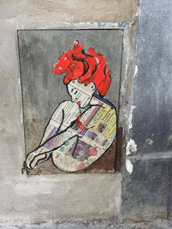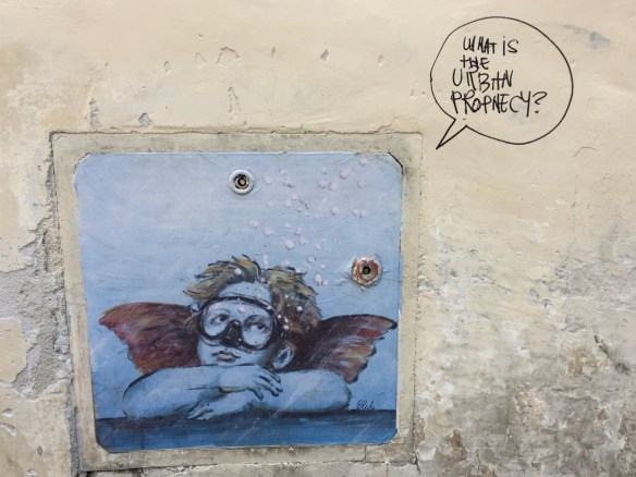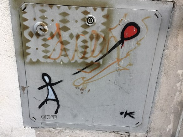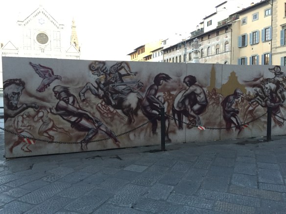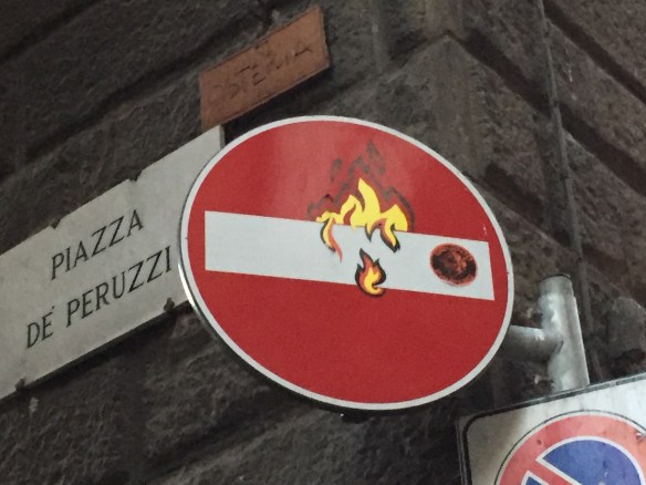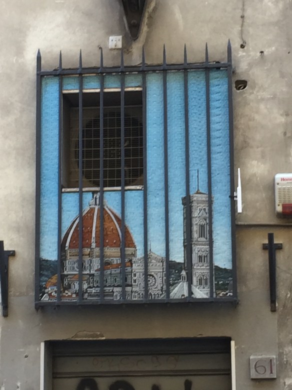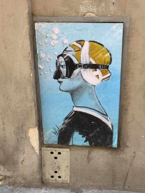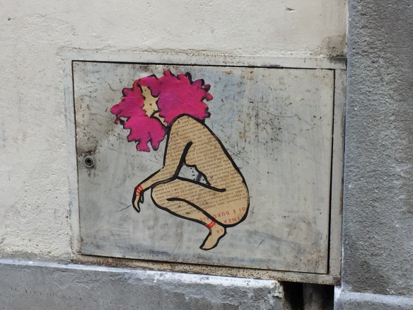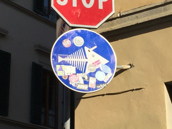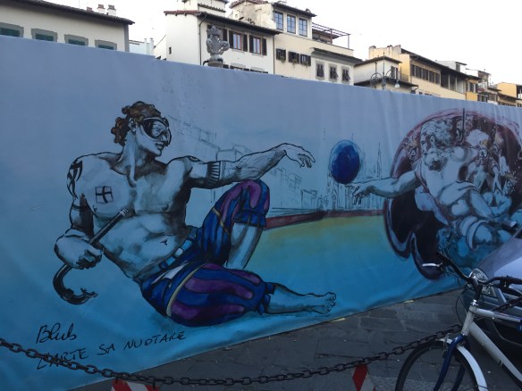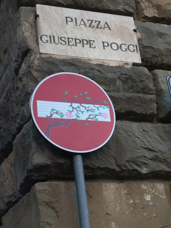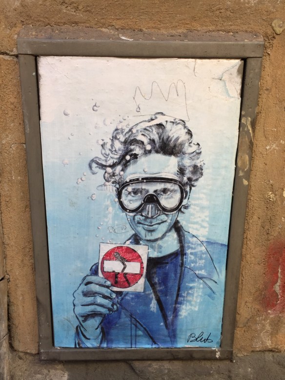 In addition to the incredible sculptures, fantastic architecture, and renaissance paintings we saw in Florence, we also spotted a lot of really fun street art while out and about, and we had a lot of fun stumbling upon it on our strolls around the city. The main artists were Clet, Blub and Marie something (i can’t remember her name, even though we actually met her!).