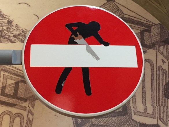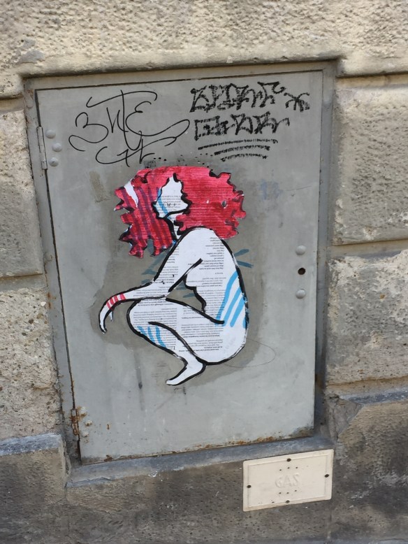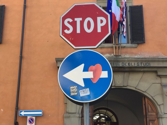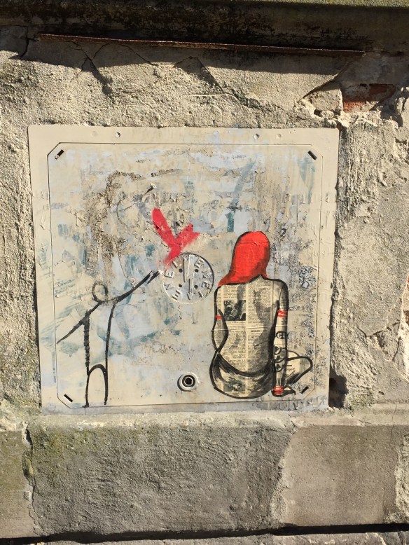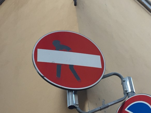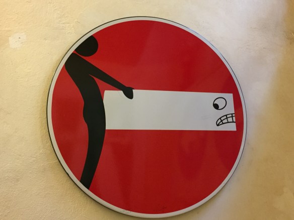 Secondly Clet, who we also had the delight of discovering by accident as we walked around the city, who takes city road signs and adds to them in really fun ways. We found ourselves compulsively checking road signs as we walked the city, and also found his gallery, where I bought his book.