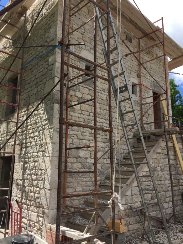 Visiting my cousin and his work site where he is constructing a new annex in a traditional French style