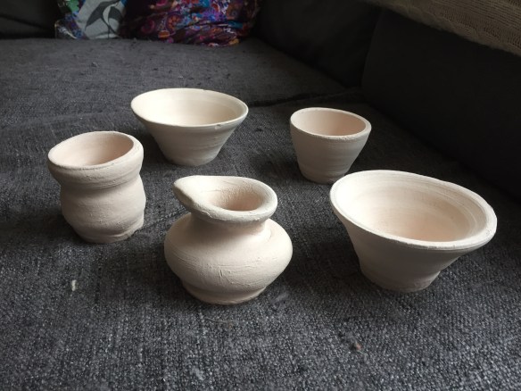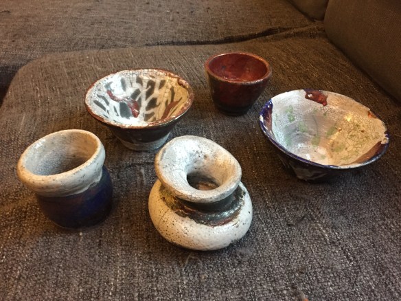 And here are my pots – bit disappointed with some of them, as I put too much glaze on/too thick so didn’t quite get the results I was after…. But it’s a learning curve for next time!