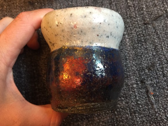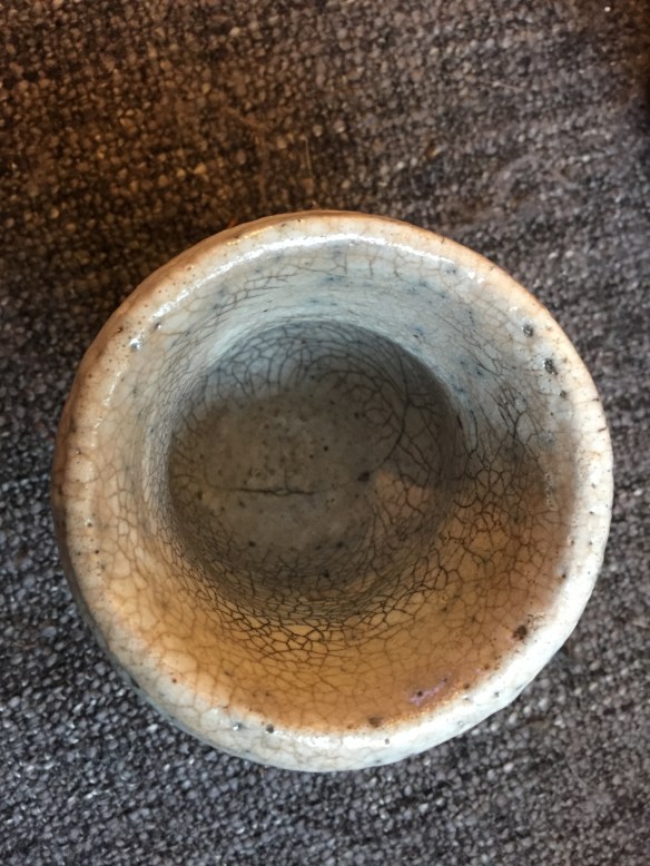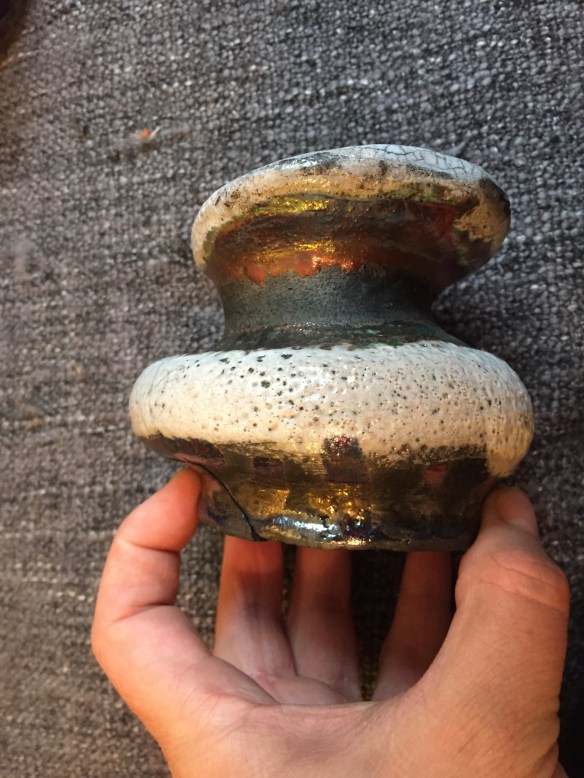 This one I was also disappointed with – it’s a lovely shaped, little squat vase, but didn’t crackle at all on the outside, and not much on the inside either. But some lovely subtle colours otherwise. It also cracked slightly so prob won’t hold any water!