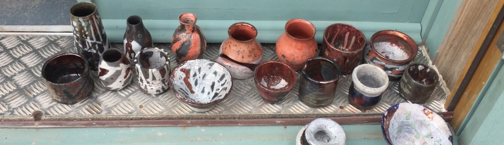 Raku is a Japanese form of glazing pottery that involves an outdoor kiln, where you bring the pots very rapidly up to about 1000 degrees, then remove them and immerse them in a combustible (usually sawdust or similar) which starves the pot of oxygen while it is oxidising and producing a lot of carbon, (a process called “reduction”).