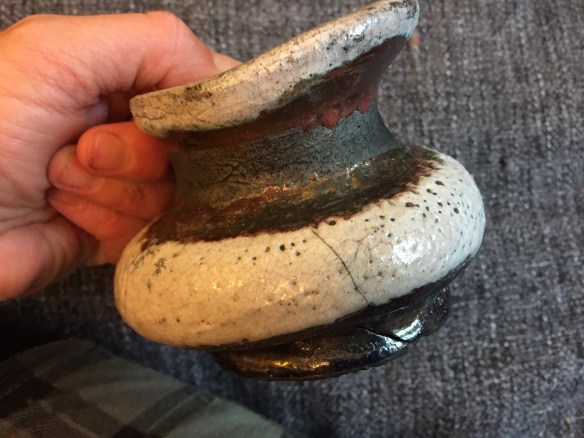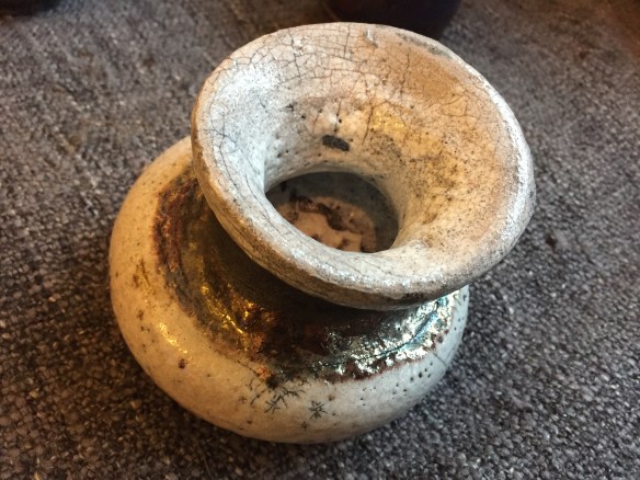 This one I was also disappointed with – it’s a lovely shaped, little squat vase, but didn’t crackle at all on the outside, and not much on the inside either. But some lovely subtle colours otherwise. It also cracked slightly so prob won’t hold any water!