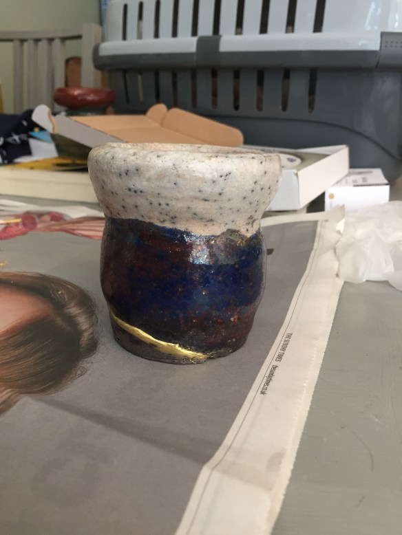 So, after my exciting Raku experience, I thought I would try another Japanese technique – Kintsugi, which is a method of fixing broken pottery using gold.