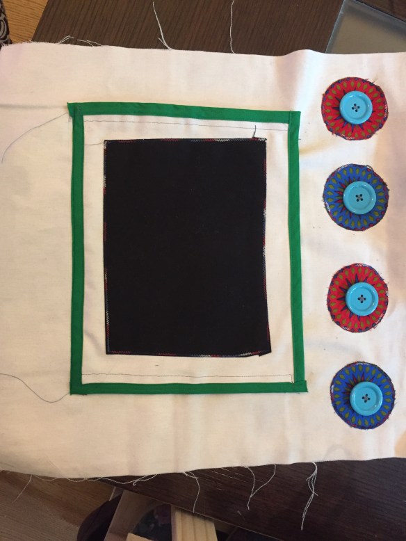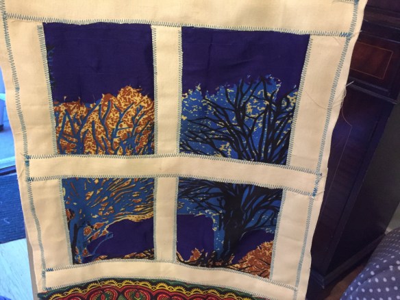 Making the window – I happened to have the perfect fabric for this – deep blue with trees on from the market in Nairobi (I actually have a lovely dress in this fabric, and this was one of the leftover scraps). I didn’t bother adding curtains though, as they would have covered up the lovely window fabric!