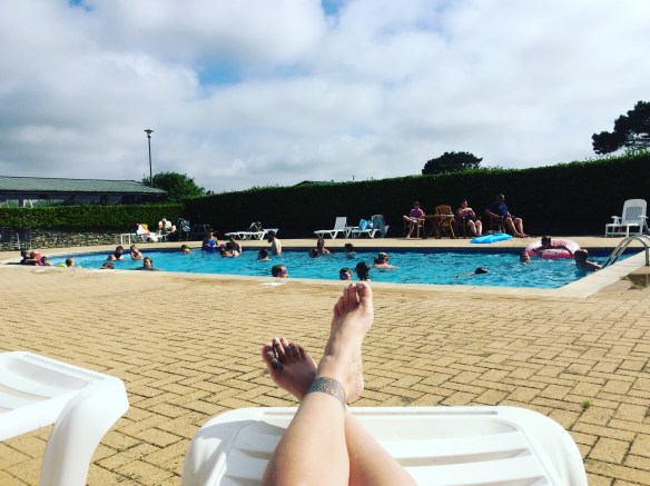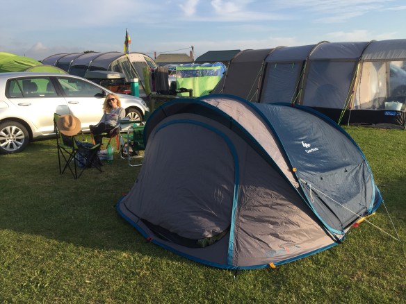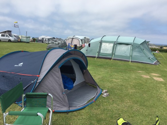 We stayed in a fab campsite in Padstow, with a pool and a bar and a shop, as well as nice hot showers etc. What we didn’t realise was that most of the other people who camp there are essentially pros who bring MASSIVE tents and have multiple rooms in their camping repertoire.