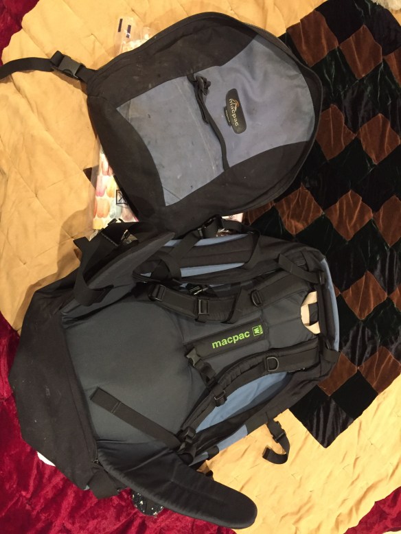 My big macpac has gone with me to Nepal, India, Malaysia, Singapore, France, Liverpool, South Sudan, India again, Nepal again, Kashmir, Oxford, the USA, The Philippines, Thailand, Australia, Iraq, Jordan, Canada, USA again, Australia again, Senegal, Kenya, Iraq again, and Senegal again.