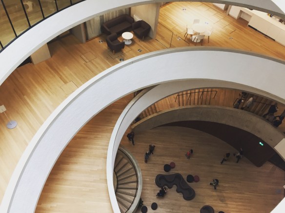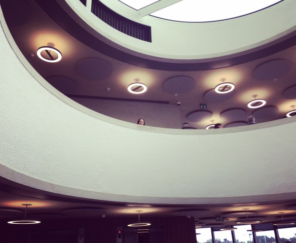 This building is normally for students only, and it’s VERY cool inside, so I’m glad we got to wander around it! It looks as though it’s sort of vaguely based around a reel of film…