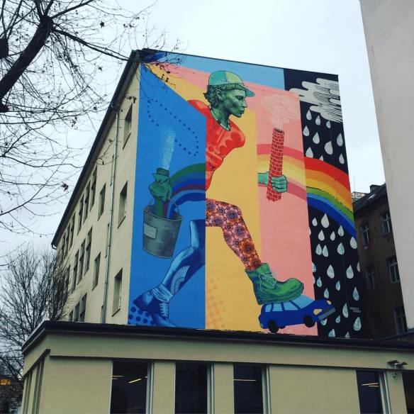 Firstly, at the train station, there was this. In the UK, these type of industrial water towers are concrete and graffiti – but in Berlin they are COOL.