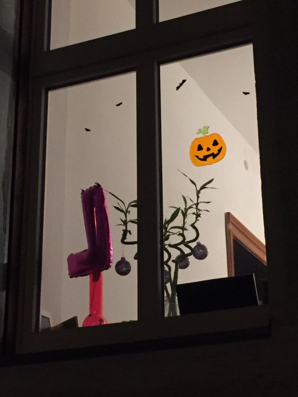 And finally, I must send a shout-out to whoever lives in this house. I walked past the window, and thought, Halloween decorations still up? Really? Then I noticed the baubles, and thought Christmas deccies still up too? Really? Then I noticed what appears to be a balloon balanced in a bong, prominently displayed in the window, and thought, well clearly they don’t care what anyone thinks – good for them!