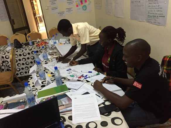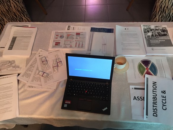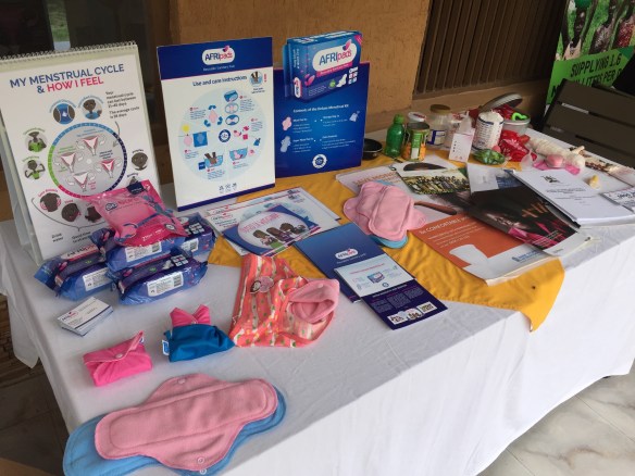 The menstrual hygiene display outside our WASH workshop – fascinating stuff on reusable sanitary products and pros and cons of disposables vs reusables etc.