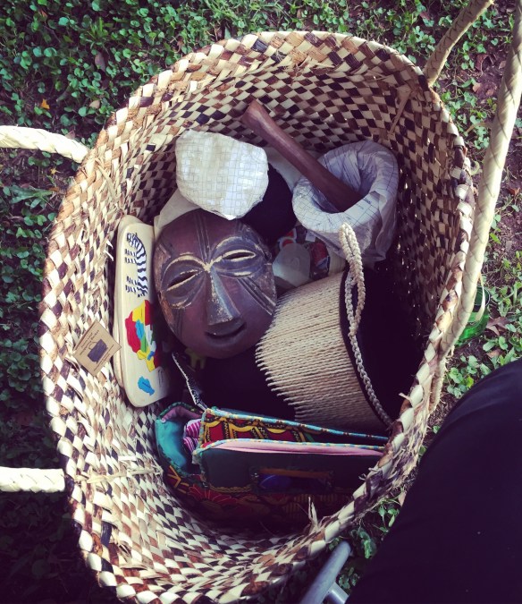 Sneak peek of my haul – new wooden pestle and mortar, a Ugandan mask to add to my collection, and some toys and puzzles for various friend’s children