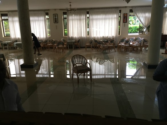 On the evening of the 2nd day, there was an epic thunderstorm in the night. We woke up to a flood of about 3 inches of water in our conference room and dining room.