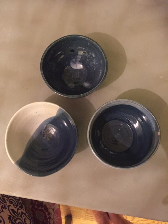 Here are 3 bowls I did with similar glazes – all have midnight blue with different ying ching accents…
