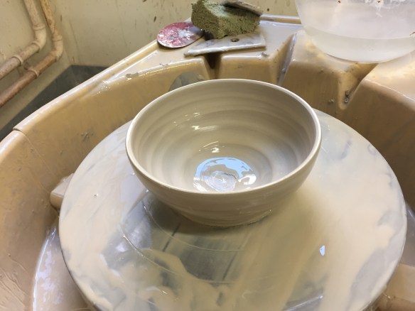 I’ve also been practicing making mugs and pulling handles. Pulling handles requires a rather hilarious hand gesture similar to milking a cow – you have to hold the clay in one hand, and with lots of water gently stroke and pull the clay down in an even motion into a long strip