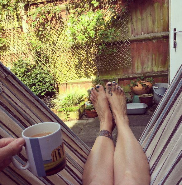 And my absolute favourite thing about summer – a cup of tea and good book on a Sunday morning in my hammock chair…
