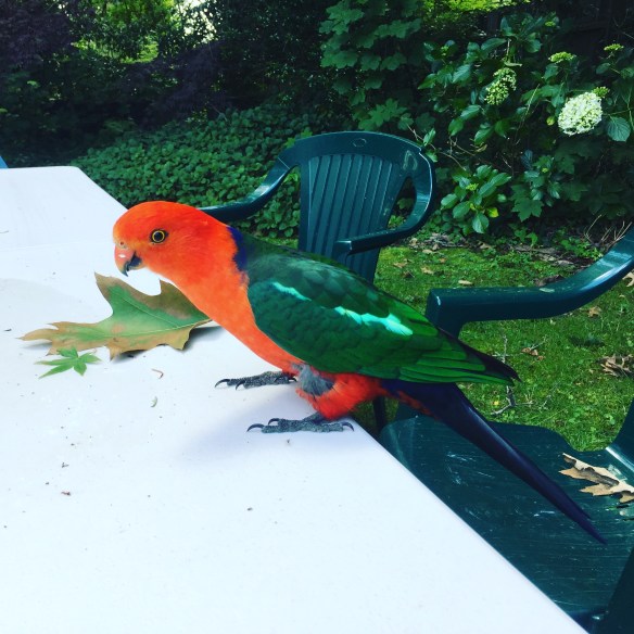 An amazingly tame King Parrot came to hang out with us in the garden – we named him Jasper Parrot…