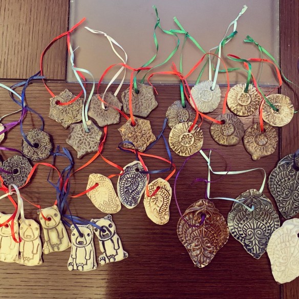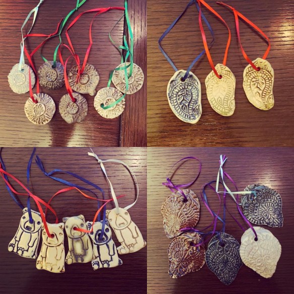 Christmas Decorations – these were actually test-tiles I made to test out some new glazes and glaze combinations in my pottery classes last term, so some of them are not the prettiest colours, but they make nice little decorations and it’s better than throwing them in the bin after I tested the glazes!