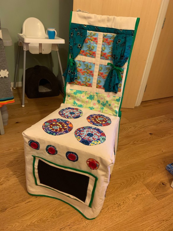 I love a play-kitchen, as do most kids, but they are huge and bulky and take up a lot of space, which I really don’t have in my house at the moment, I saw this a few years ago and made one for my god-daughter, and decided to make another one for my daughter’s second birthday.