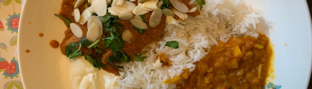 - Turn the heat down to medium-low, cover and simmer for 20 minutes, then remove the lid and cook for a further 5 minutes, or until the meat is tender and the sauce has reduced, stirring occasionally. (Note I simmered for longer with the lid off to reduce it as I had used extra coconut milk. Also I added some extra ground almonds for texture, prob a tablespoon or so, but that’s up to you. I also squeezed half a lemon straight into the curry instead of serving it with lemon wedges a la Jamie.)
