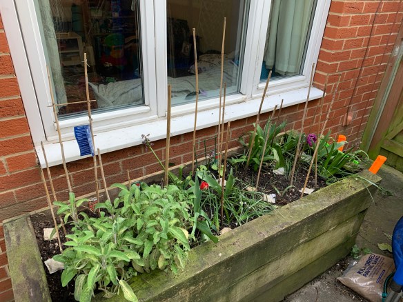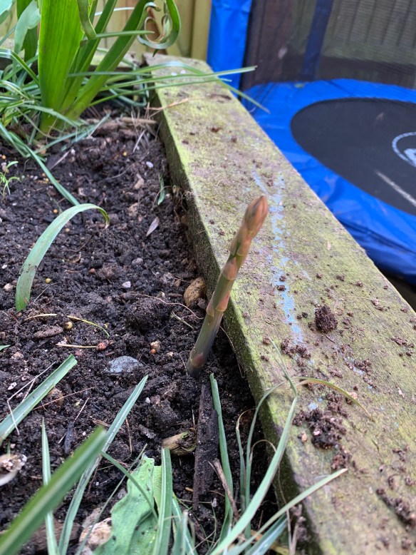 Sorted out the garden for a bit – wanted to re-arrange a few plants and bulbs and make space for some more vegetables and attempted a makeshift anti-cat device to stop the cats digging up my seedlings and shitting on the vegetables. Got my first spear of asparagus up this week which was nice!