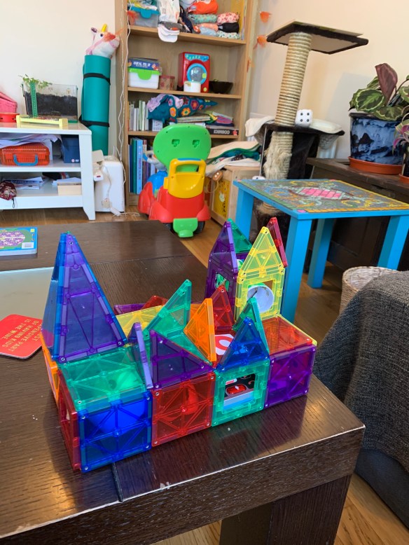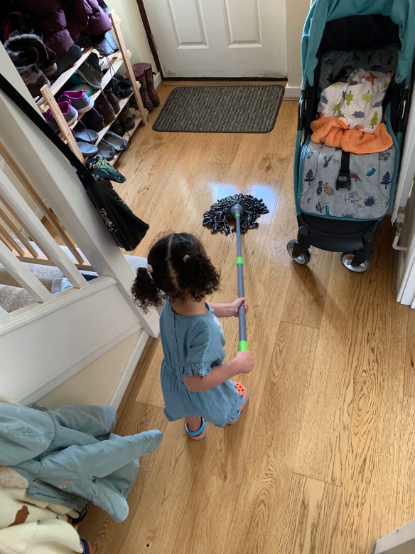 This morning in my bed she was playing under the duvet making a den with her teddies, and I heard her talking to her penguin and it sounded like she was saying “It’s not safe”. I don’t know if she was trying to say something else, but that’s certainly what it sounded like. It is a stark reminder that kids at this age are absorbing a lot more than we realise.