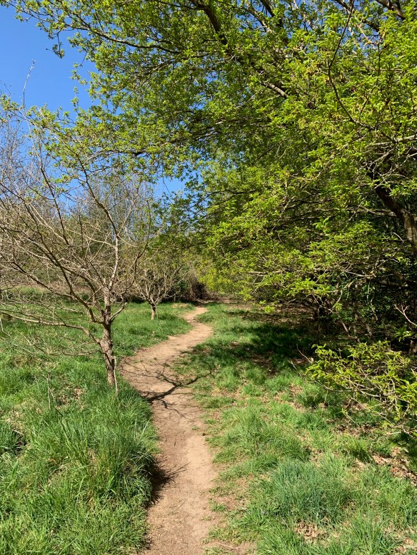 We watched a lot of tv all day, and I was still really tired but realised we would have to get out at some point so we went to the park – and made an amazing discovery! We explored a little path into the woods that we haven’t been up before, and it turned out it goes up the hill along a lovely little trail and pops out onto the golf course, which I always thought was private property, but it actually has a public footpath right through the middle of it! Plus at the moment no-one is golfing anyway, so we can go back and explore the greens at our leisure. So nice to have found a new local place to explore to help alleviate the boredom!