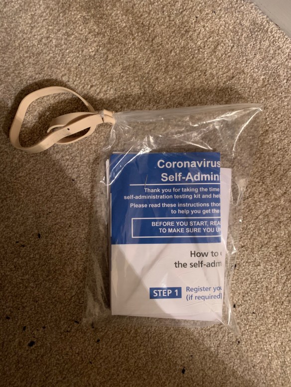 Then I put the swab into the test tube, snapped off the end, and sealed it, and popped it back in it’s original bag. Then he asked me to place it on the dashboard and drive to the next stop. There I called another mobile number and another cheery bloke looked at everything through the windscreen to check it was all in order before instructing me on how to seal it all up correctly, and then a man in full PPE came out with a large cool box, and I opened my window a few inches to drop it into the box. And that was it, I was waved off.