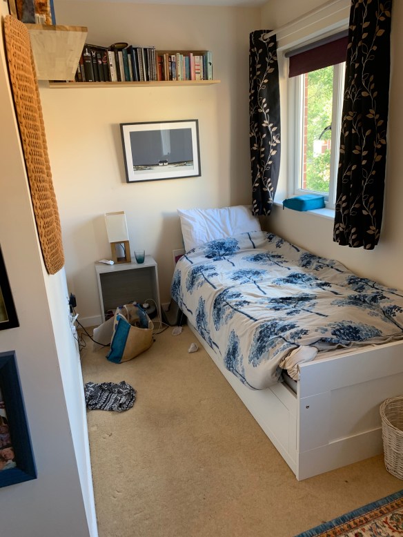 Mum (and the kid) helped me to re-arrange all the furniture in my spare room in the morning. I had originally set the room up as a spare room primarily, and a home office as secondary use, as I was only using it occasionally to work from home. However I have realised that I am likely to be working from this room every day for months, and possibly indefinitely, and I don’t have visitors staying the night that often, so it now needs to be better laid out as a home office first and a spare room second. It means the bed is a little less accessible and slightly harder to use as a double bed, but my desk is now out in a sensible place where I can get to it easily and comfortably. I think this new set-up will make working from home much more comfortable and easier all round.