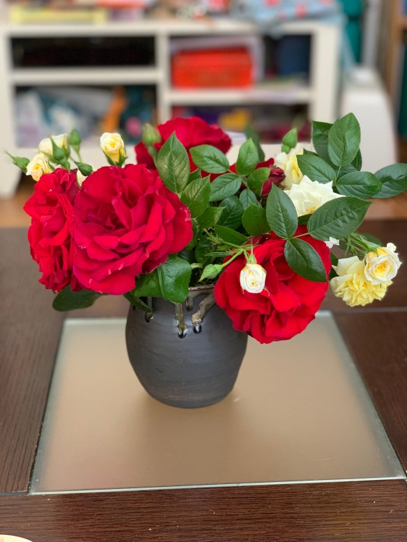 I got loads of lovely presents and cards, and we picked some of the gorgeous roses from my garden to put in a vase.