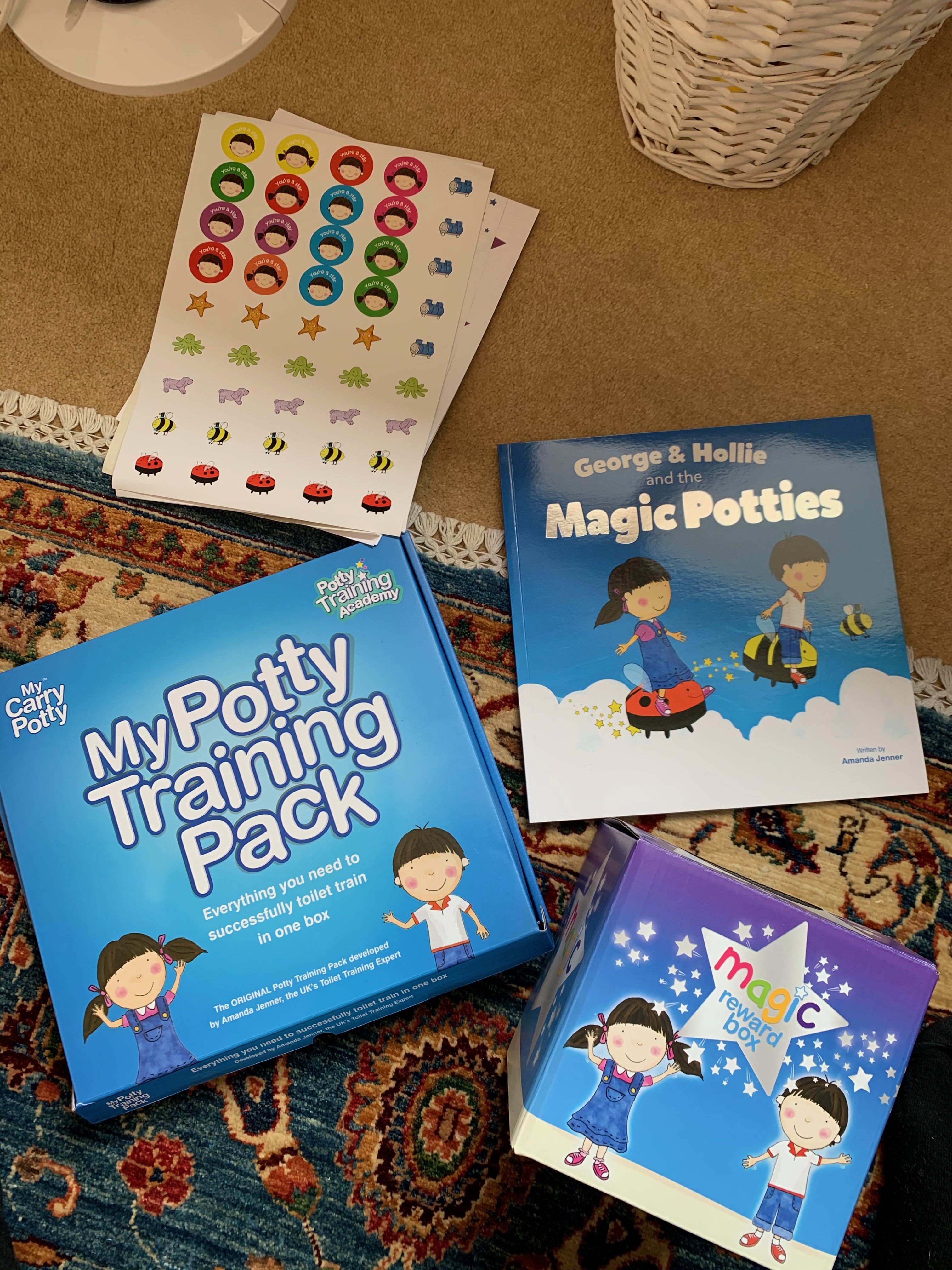Of course the book suggested purchasing all their special branded stickers and rewards and a carry potty and flashcards and so on. Obviously I didn’t need to do that, but actually I realised I didn’t have a potty to take with us out and about, which is going to be essential, as you’re not allowed to just shit in the park. Plus the package came with a book and matching stickers so I just thought fuck it, I’ll buy it.
