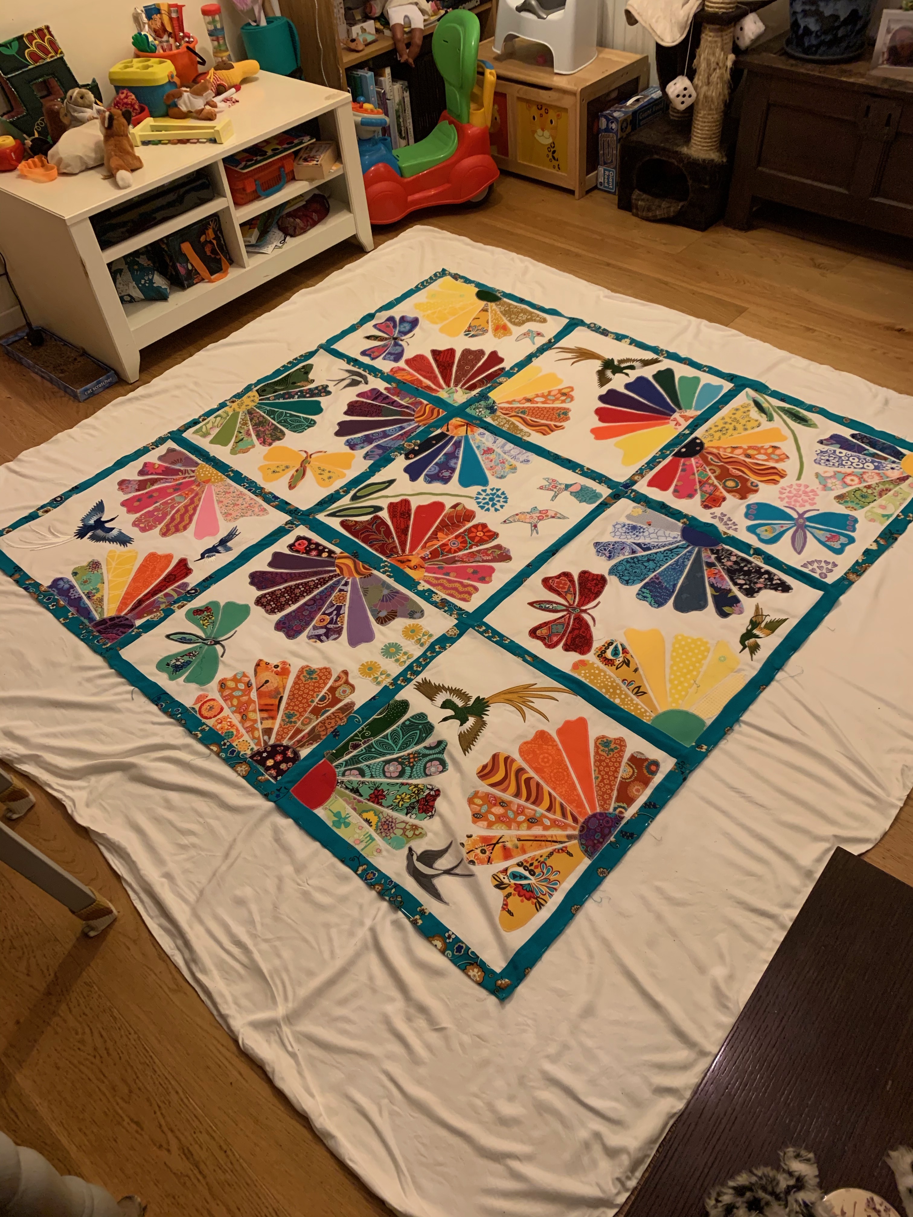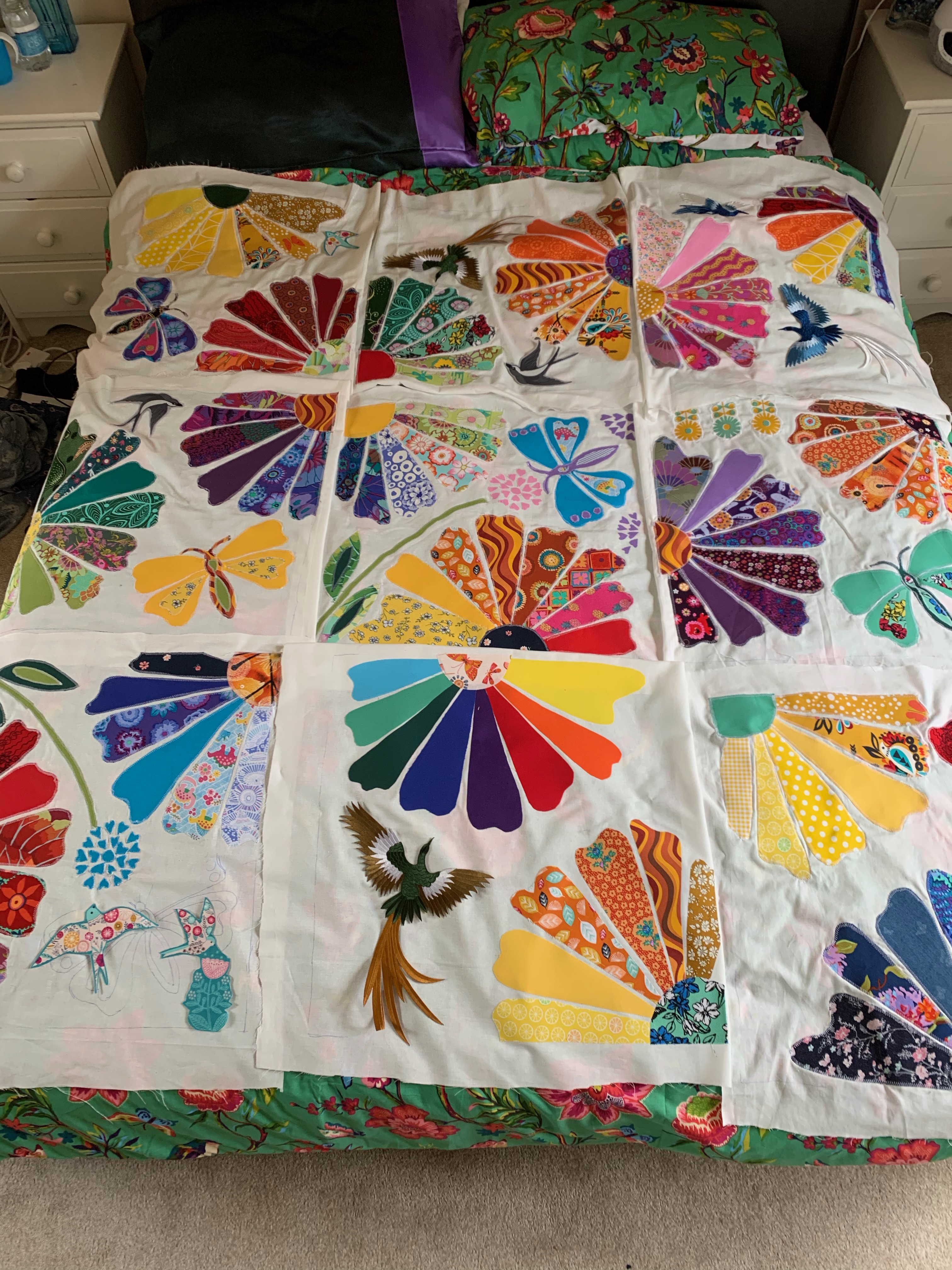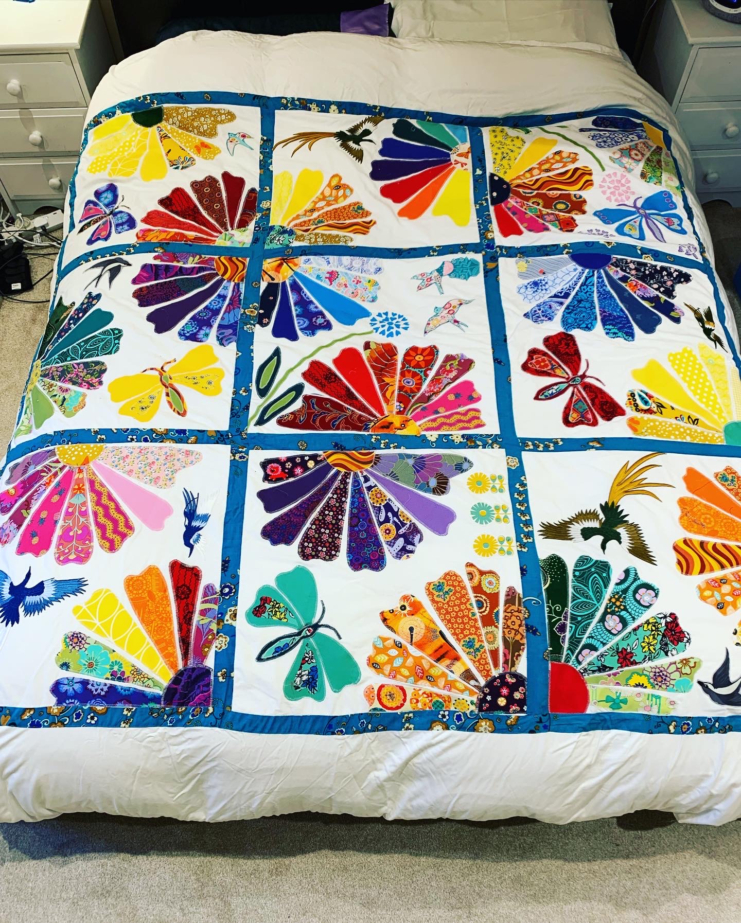 During lockdown I started on a new creative project to cheer myself up and help me keep busy, and five months later I have finally finished it! An appliqué quilt, but as I already have a winter quilt for my bed, I wanted to make it into a really bright, colourful, summer duvet cover instead.