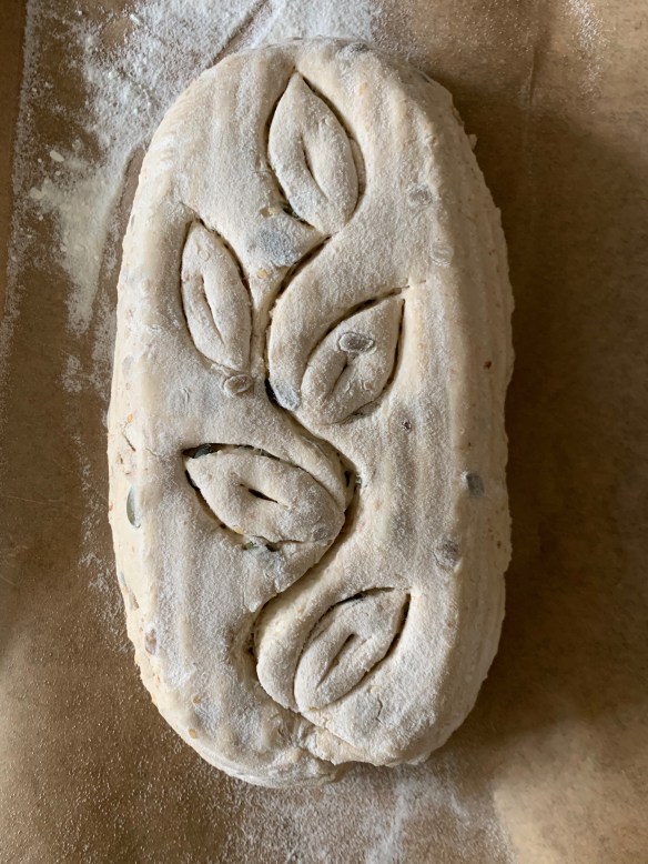 As I got better at it I have also been honing my scoring skills. Scoring serves two purposes in sourdough – principally, it’s to ensure it rises evenly. If you don’t score it at all, the bread will generally find a random spot and burst out in a peculiar way as it springs up in the oven, so scoring the dough gives a predictable way for the dough to expand and rise the way you want it to.