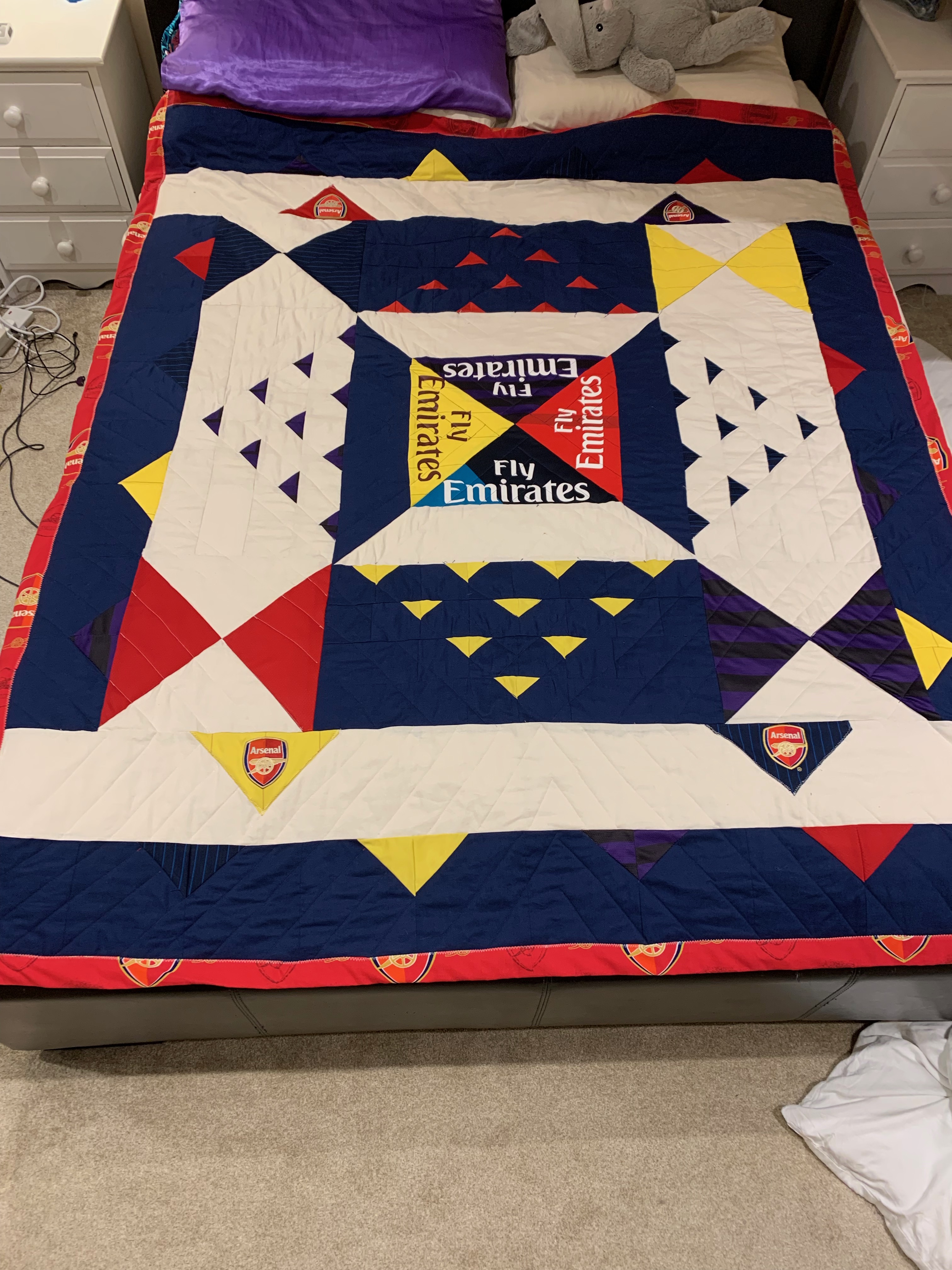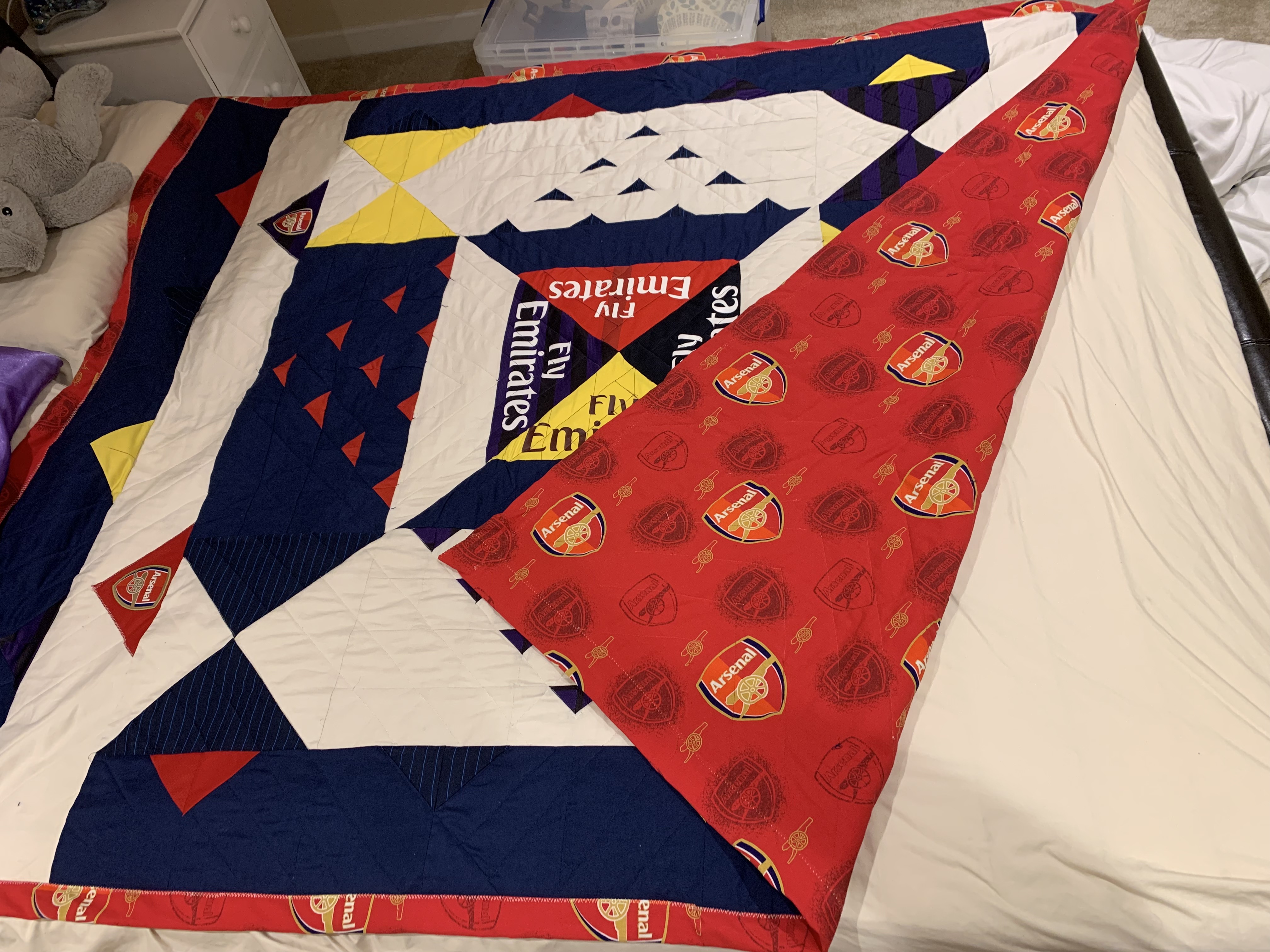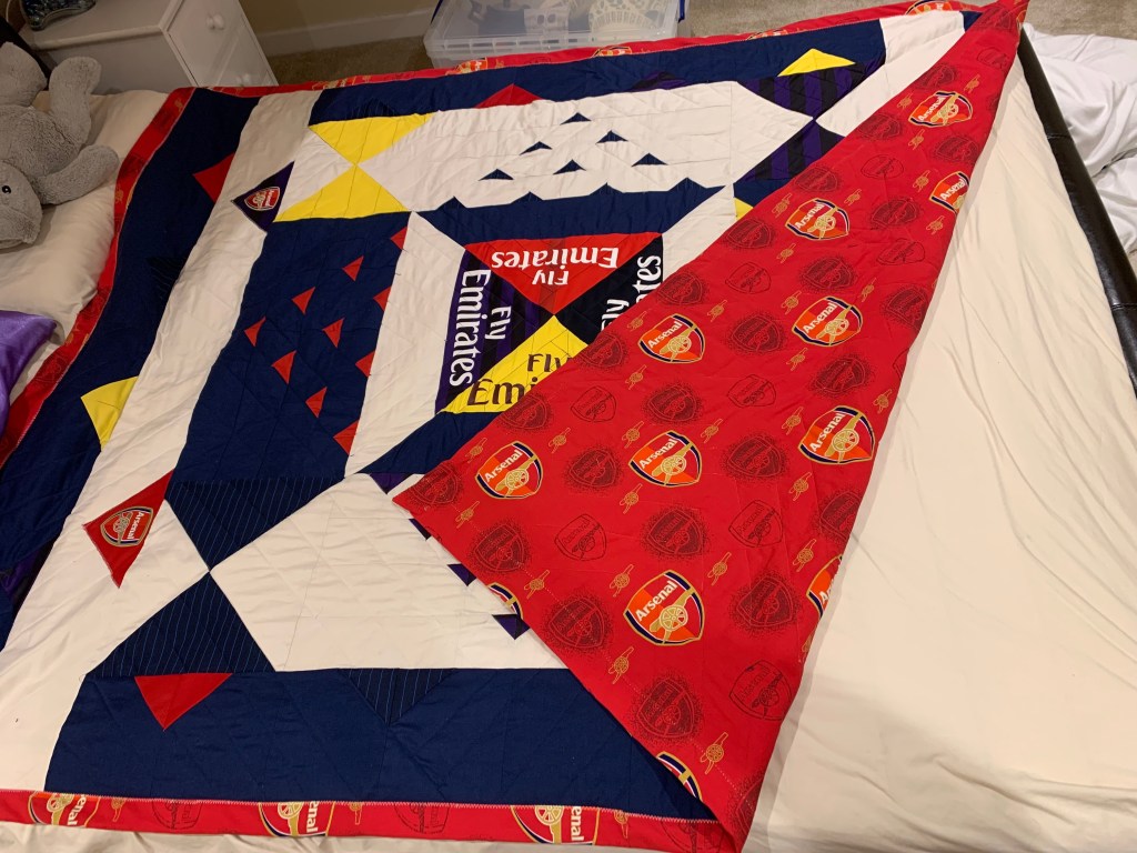 I decided to make a quilt for my nephew’s 18th birthday. He’s the world’s biggest Arsenal fan so the theme was easy.