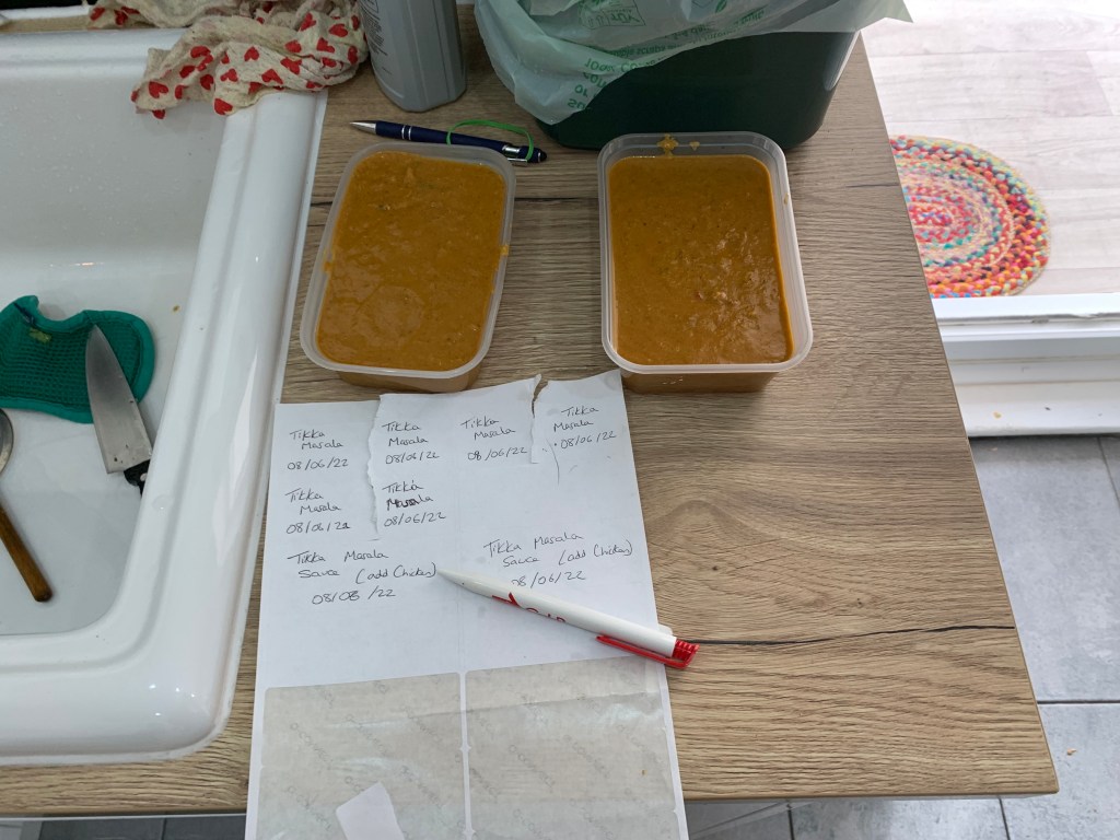 So, you’ve picked a cheap supermarket, and you’ve done a meal plan and your “big shop” – Step 3 is the batch cooking. In addition to a large freezer you’ll need lots of tubs and containers, but you can often re-use packaging from other things (tubs of pasta sauce, takeaway containers etc) so no need to buy in bulk. Sticky labels are a must!