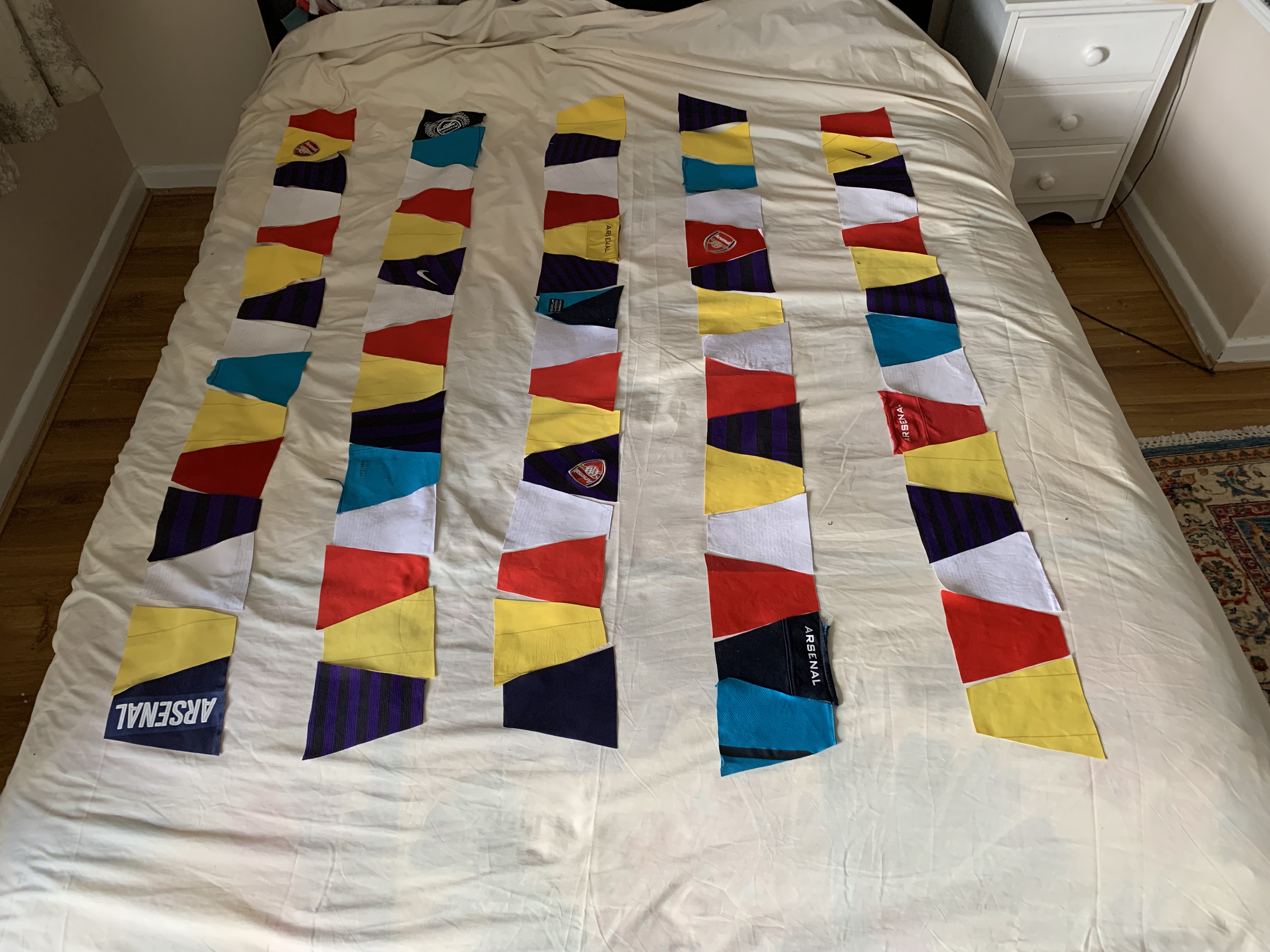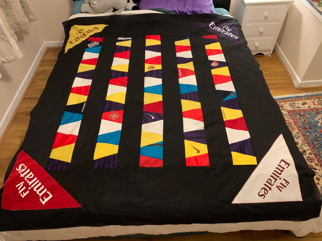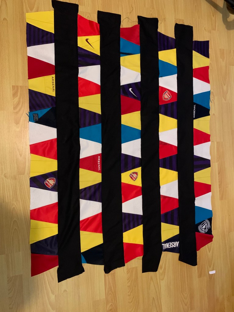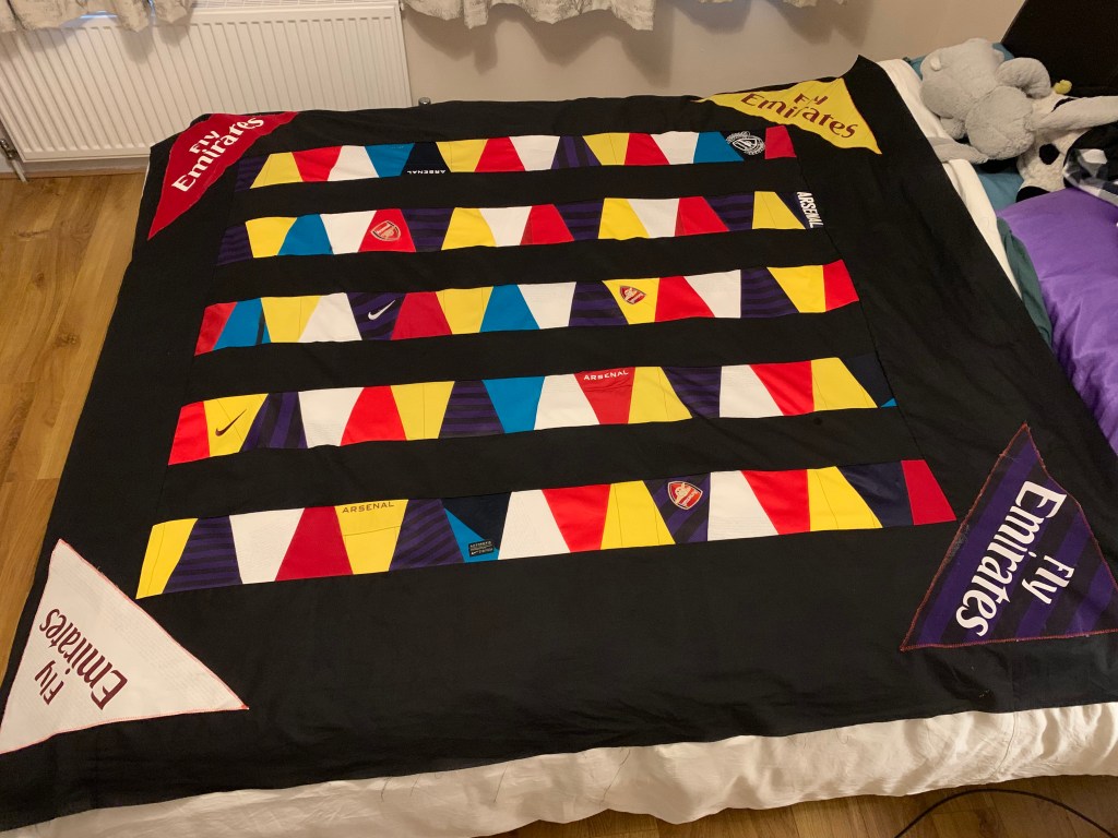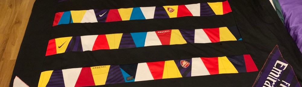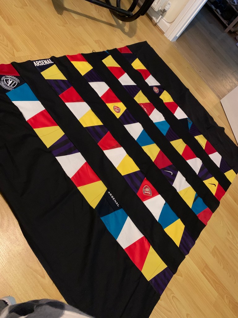 In spite of the fact that my second nephew isn’t turning 18 for about 18 months, I decided to crack on with his quilt as it’s an easy pattern and one I was keen to try, and I had quite a lot of scraps of Arsenal shirts leftover from the first quilt for my older nephew!