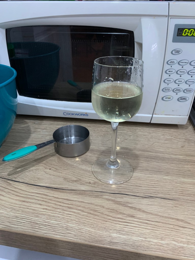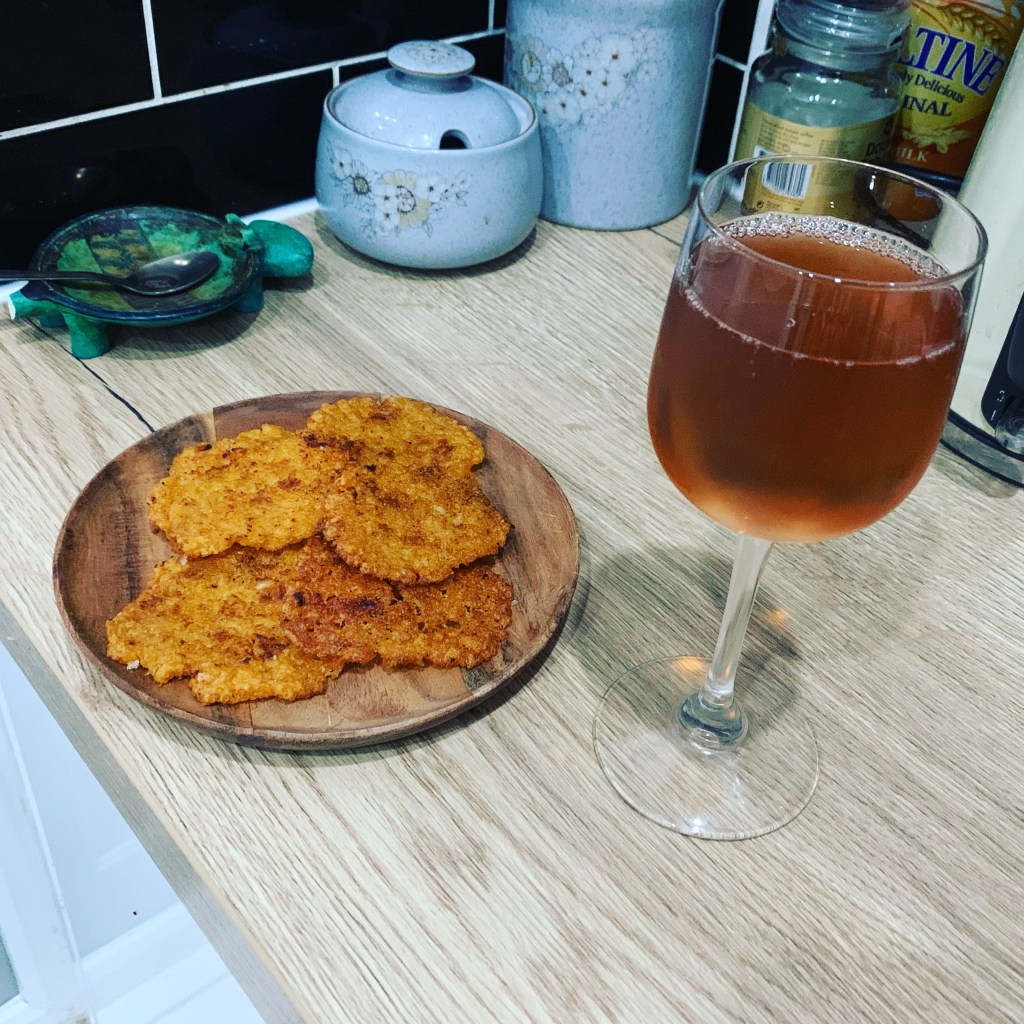 Although this evening I was still feeling hungry and so I made some more rice crackers and I had a brainwave and put some more fruit tea into a wine glass – psychologically it really felt like a treat! I pretended it was Rose´ in my head!